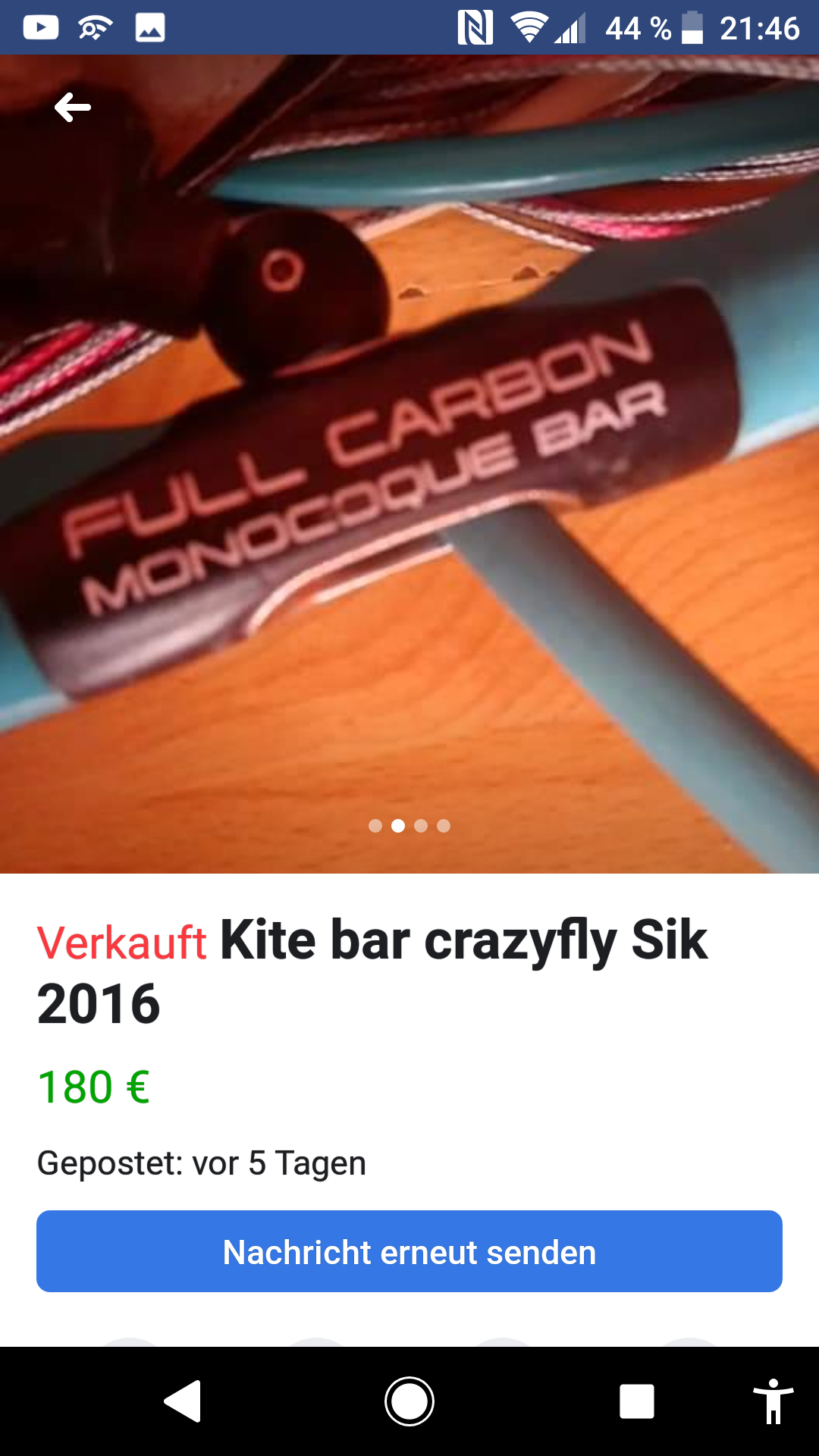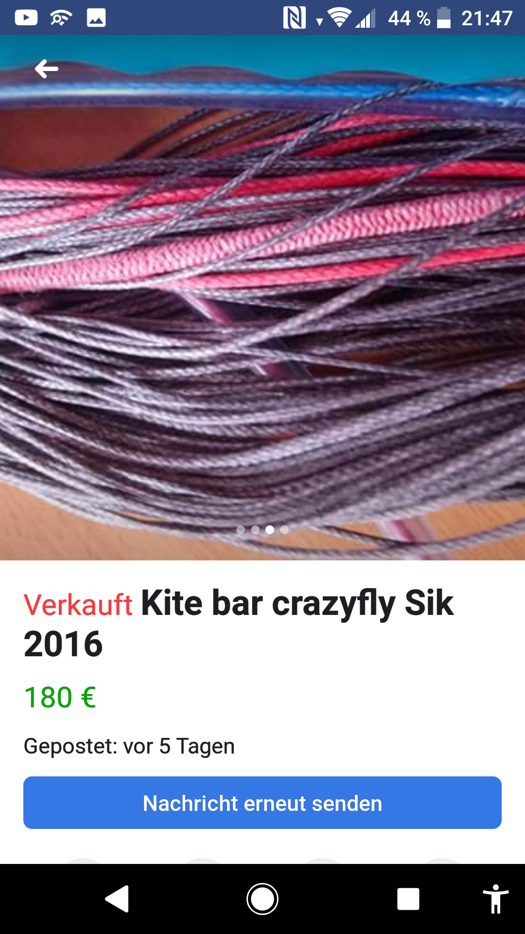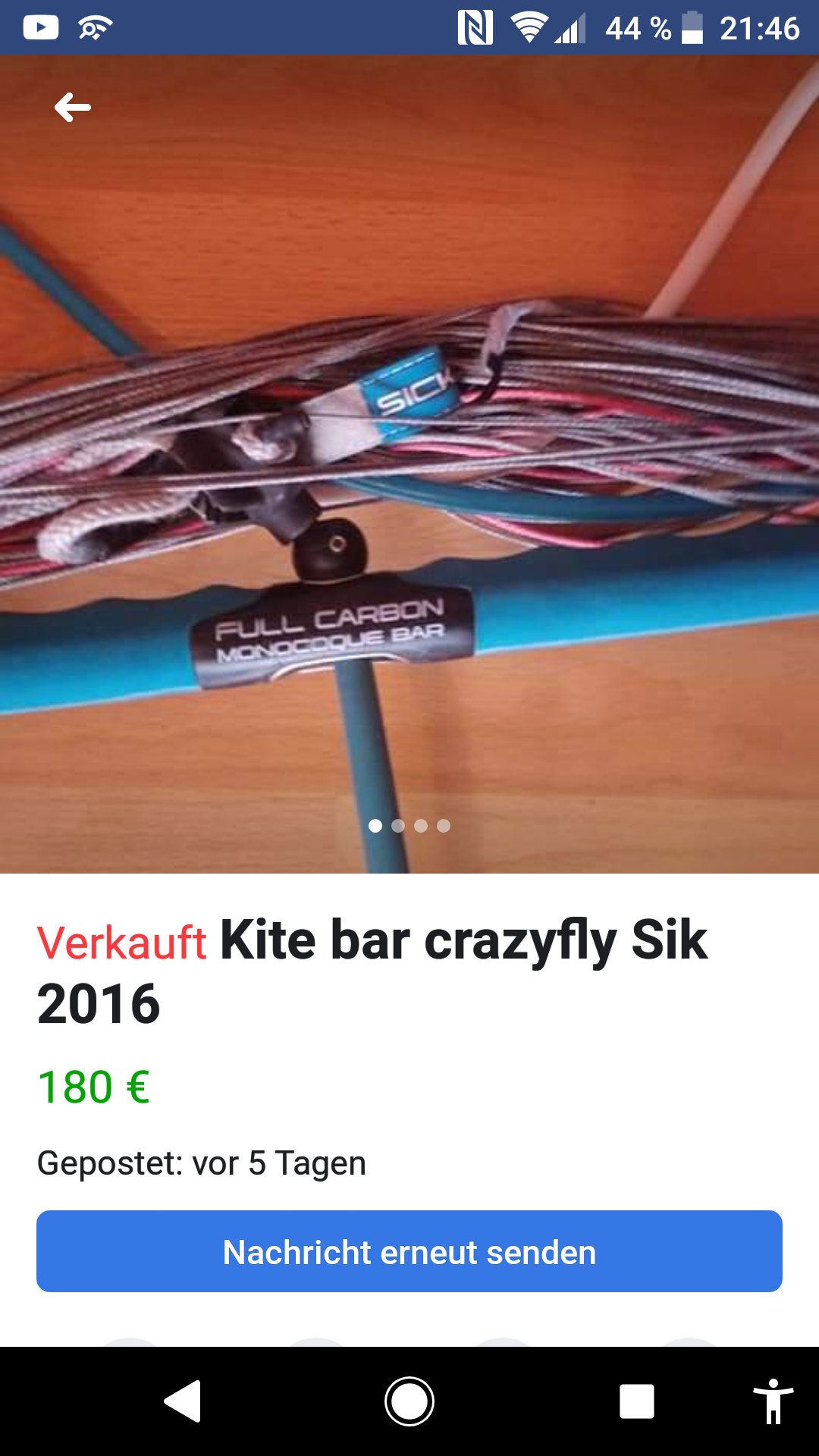Ich habe mir zu dem Kite in einer Kite Gruppe bei Facebook eine Depowerbar geschnappt, da werde ich Fotos bringen, wenn die da ist, und von Molli die kurzen Ozone Handles