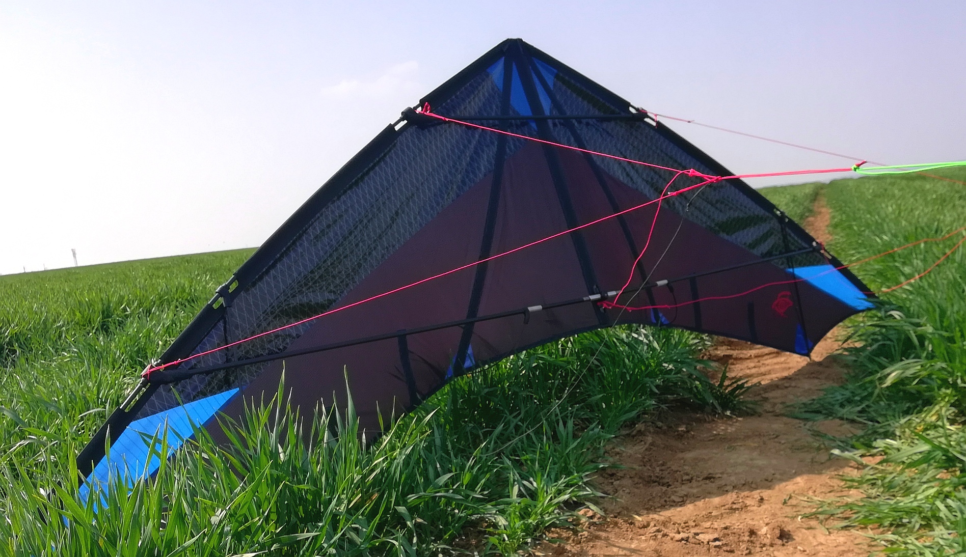 Musste ihn neu bestaben und die Waage neu knüpfen aber das Segel ist Top und gut genäht. Ganz leicht unsymmetrisch, aber beim heutigen Jungfernflug habe ich nichts davon gemerkt.