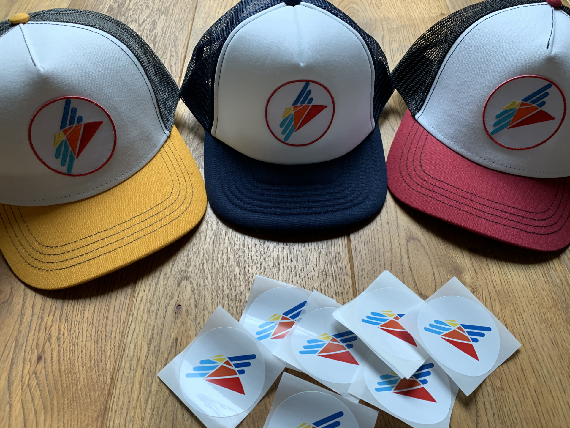 erstmal durch. (Na ja... Hab noch was im Sinn.)Outdoor Aufkleber und Caps für das Team