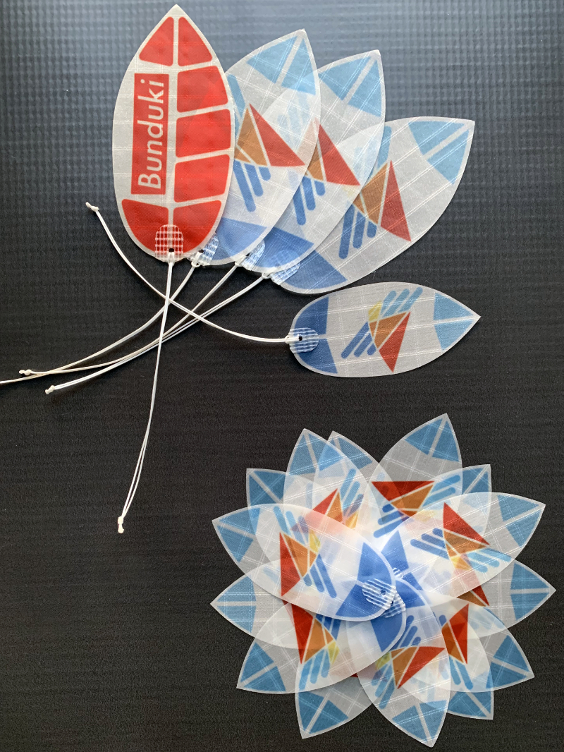 Das sind sog. "Federn". Bedrucktes Icarex. Reiner Schmuck zum sammeln, tauschen, verschenken oder schmücken. Manche haben die an ihren Kites Bags wie Patches oder auf ihren Hut (wie Roelof – wenn Du den nicht persönlich kennst, am Strand erkennst Du ihn sofort).