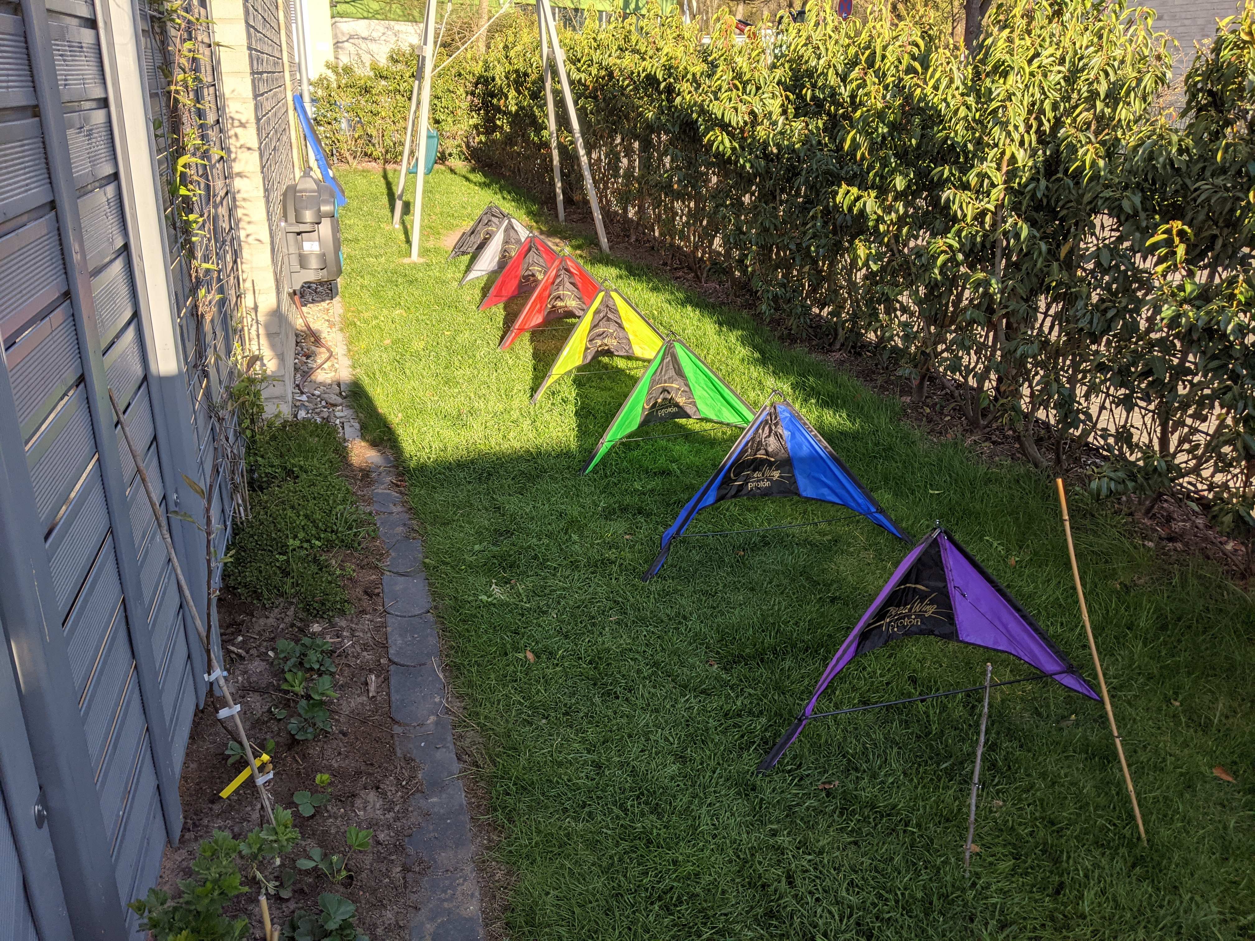 Ich hab wieder mal meiner Leidenschaft für sehr grosse Drachen gefröhnt und meinem Roten Begleitung besorgt.... Poposurfen kann losgehen...und damits nicht fad wird, gleich mal ans Koppelleinen klöppeln gemacht... Tampen sind fertig...