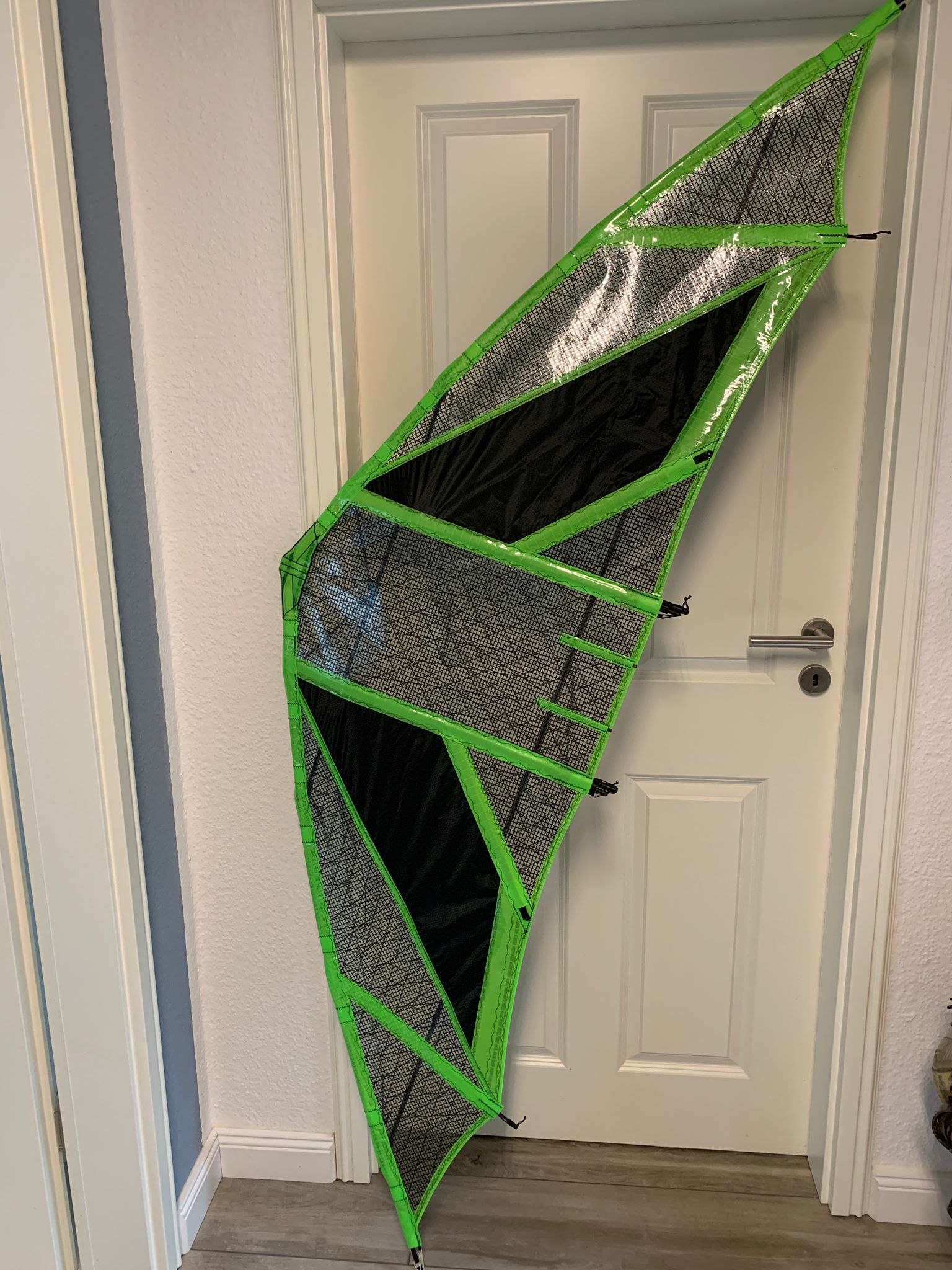 Naja, mir wurde ja schon öfter gesagt ich soll mich mal an Speed-Drachen versuchen, aber irgendwie wollte ich nich gleich viel Geld ausgeben und dann tauchte dieses Angebot von Jörg in der Börse auf. Nach kurzem Geschreibsel mit ihm ob das was zum anfangen/probieren wäre meinte er das er mir die Wutz uneingeschränkt empfehlen kann. Also habe ich zugeschlagen...mal sehen ob ich das bereue oder nicht...für Morgen sind zwischen 40-80 kmh angesagt...leider mit Regen, aber vielleicht erwische ich ja ne Regenpause mit nicht ganz so viel Wind.
