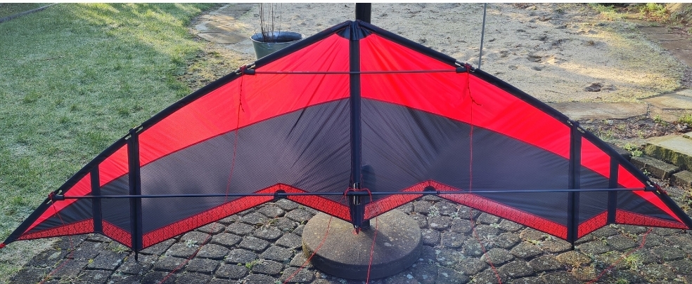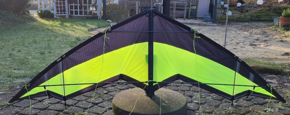 Whow, ein echtes Urtierchen hast du da an Land gezogen! Mhh, da kommt bei mir die Frage auf, wer war zuerst da...der Radian, Die Mystic, und da war doch noch einer mit ähnlichem Aufbau und Design.... der " Wild Wing"..Die blassen Farben zeugen wohl auch vom Alter, nix desto Trotz ein geiler " Retro" - Drachen!!