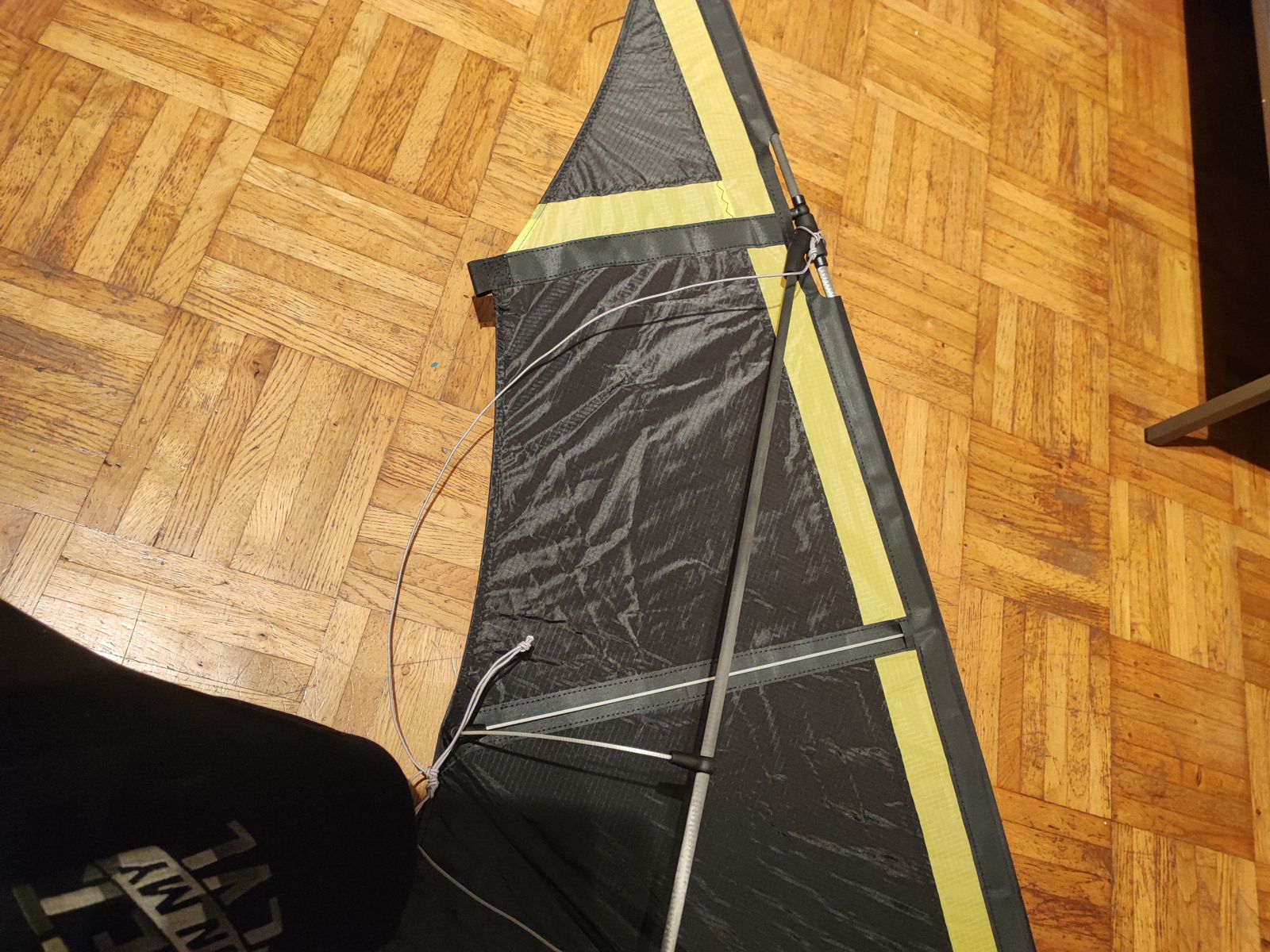 Edit: wenn man nach dem Bild von Spiderkites geht, dann werden die langen Segellatten ebenfalls durch eine Tasche geschoben.