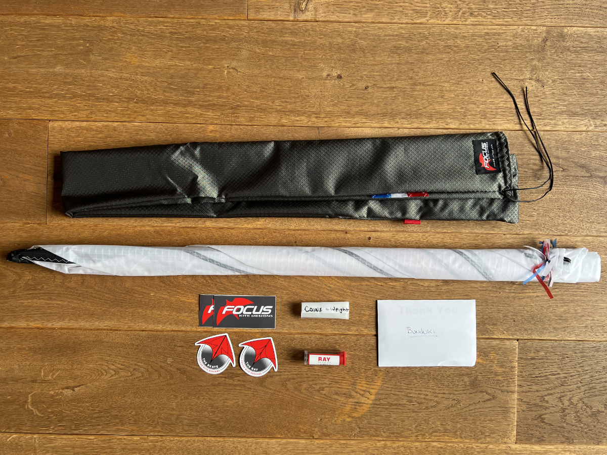 Enorme 237 cm Spannweite und nur 130 g schwer. Sehr schön und hochwertig verarbeitet mit vielen durchdachten Details und Lösungen wie bspw. die Trimmung (Nose Weight) oder die funktionelle Tasche. Der Abwicklung und die Kommunikation mit Hunter Brown ist 1A. Der Service top: Schaut auch nur mal die kleinen Aufmerksamkeiten an.