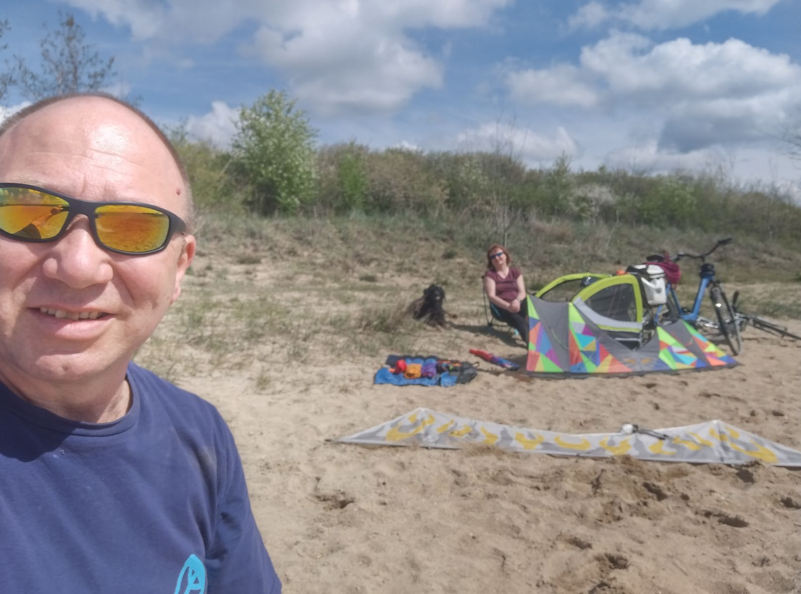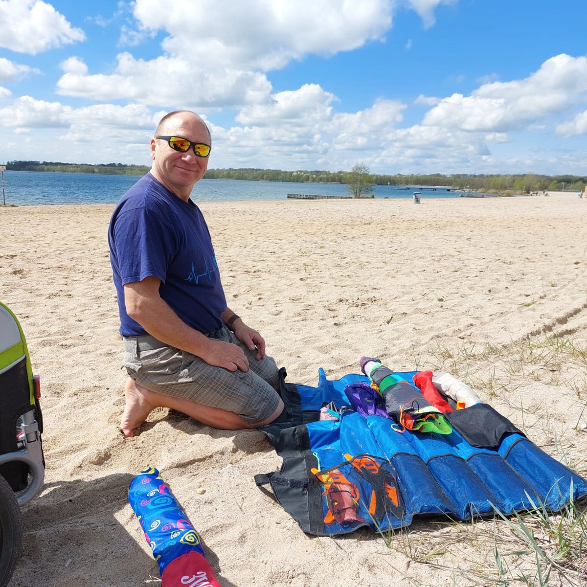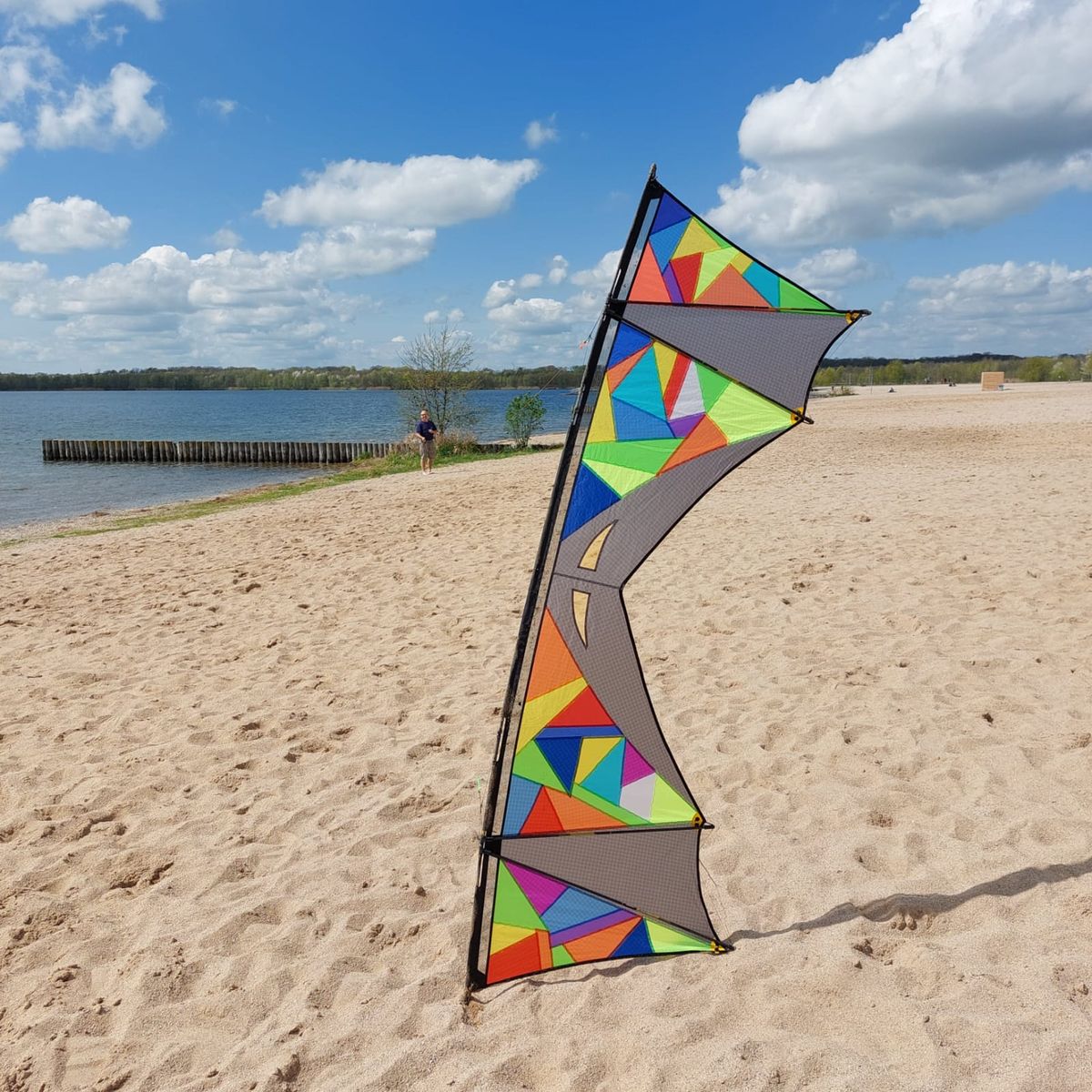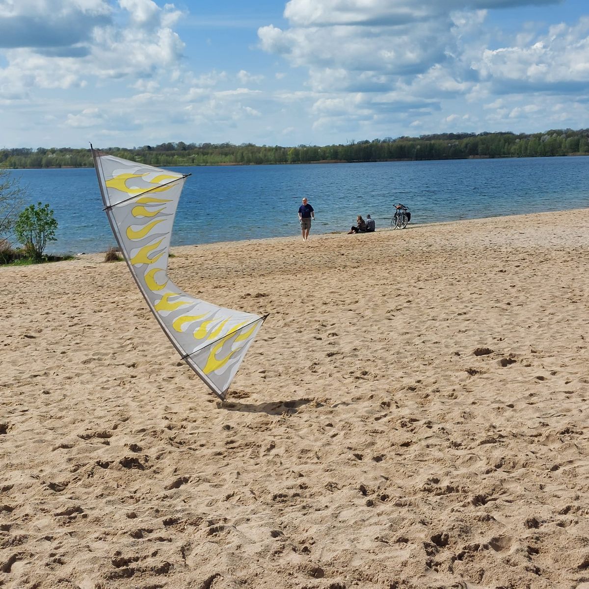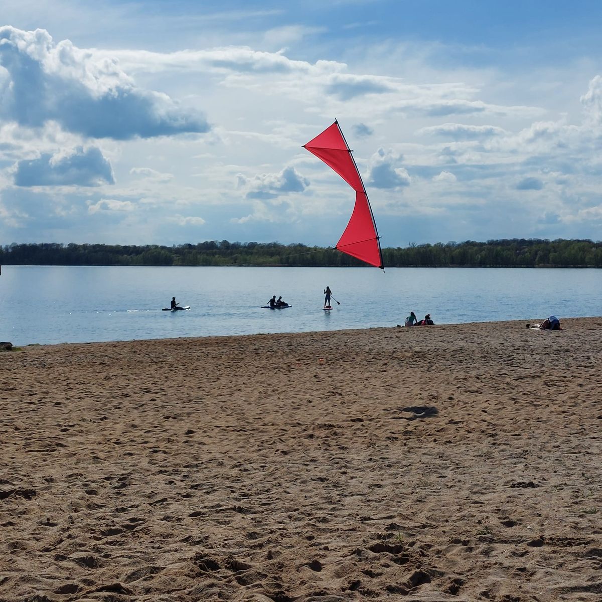 Heute mit Freundin und Ihrem Hund bei Kaiserwetter und durchwachsenem Wind 4 Leinerstabdrachenfliegen am Nordstrand Cospudener See. Am Anfang so ca. 8-10, am Ende eher 3-4 kn.