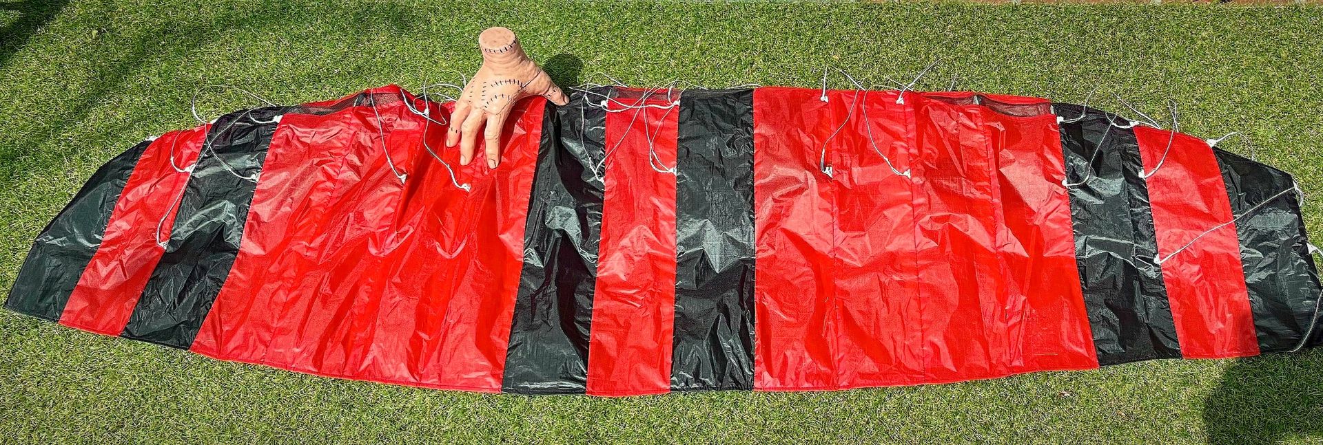 Oder ein Steckie wo du die Leine befestigst, da kann sie auch nicht abhauen mit Kammern nach unten ( Landung natürlich am Windfenster)