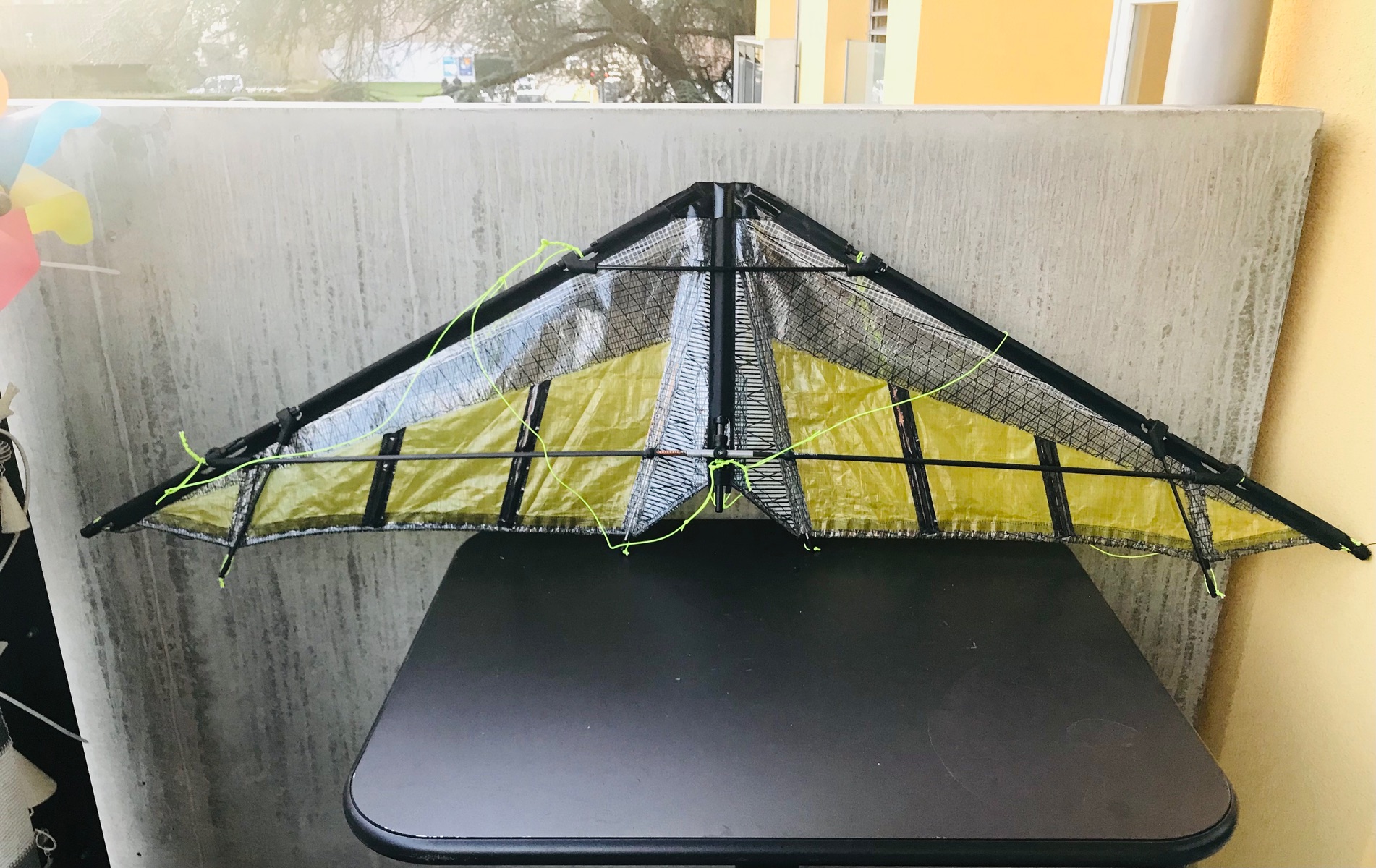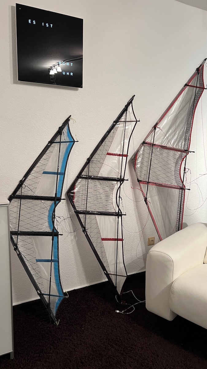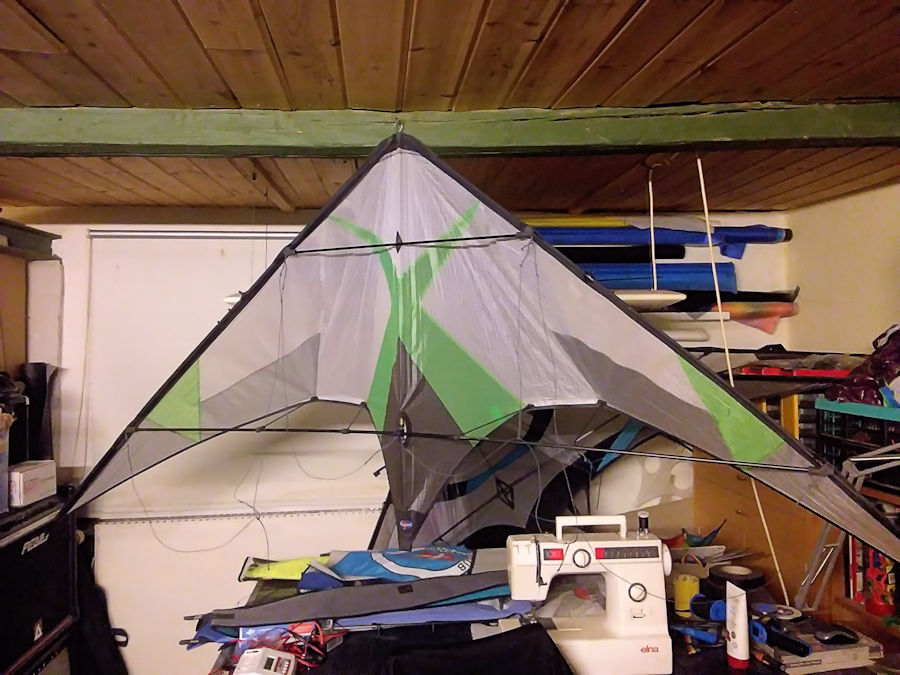 Sehr interessant finde ich den Blick in die Garage. Der Drachen mit den Spacekites Logo könnte ein Carat sein. Michael hatte vor ein paar Monaten mal gesagt, dass er den vllt wieder bauen wollte.