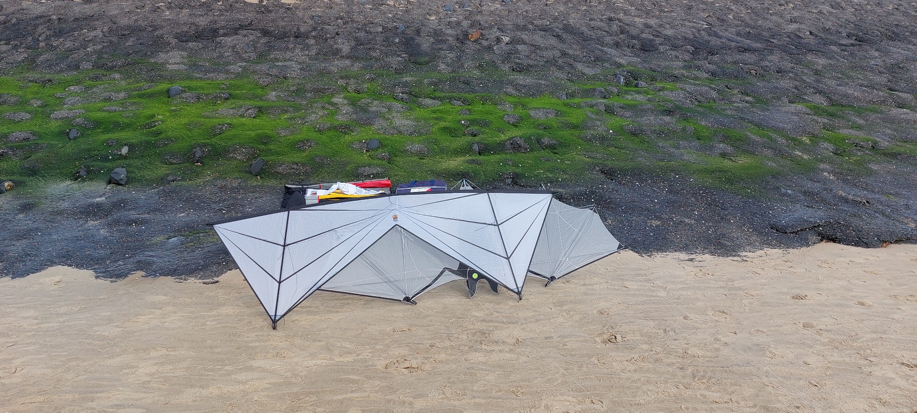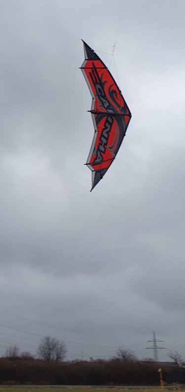 Seit wenigen Stunden in meiner Drachentasche: Redcat von gerard61 , gebaut im Zimtzickenshape (200 cm Spannweite). Fliegt ganz hervorragend und hat mir meinen ersten flachen Axel geschenkt