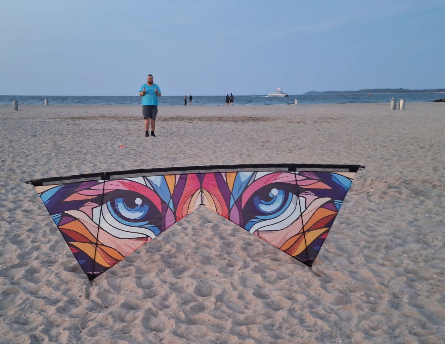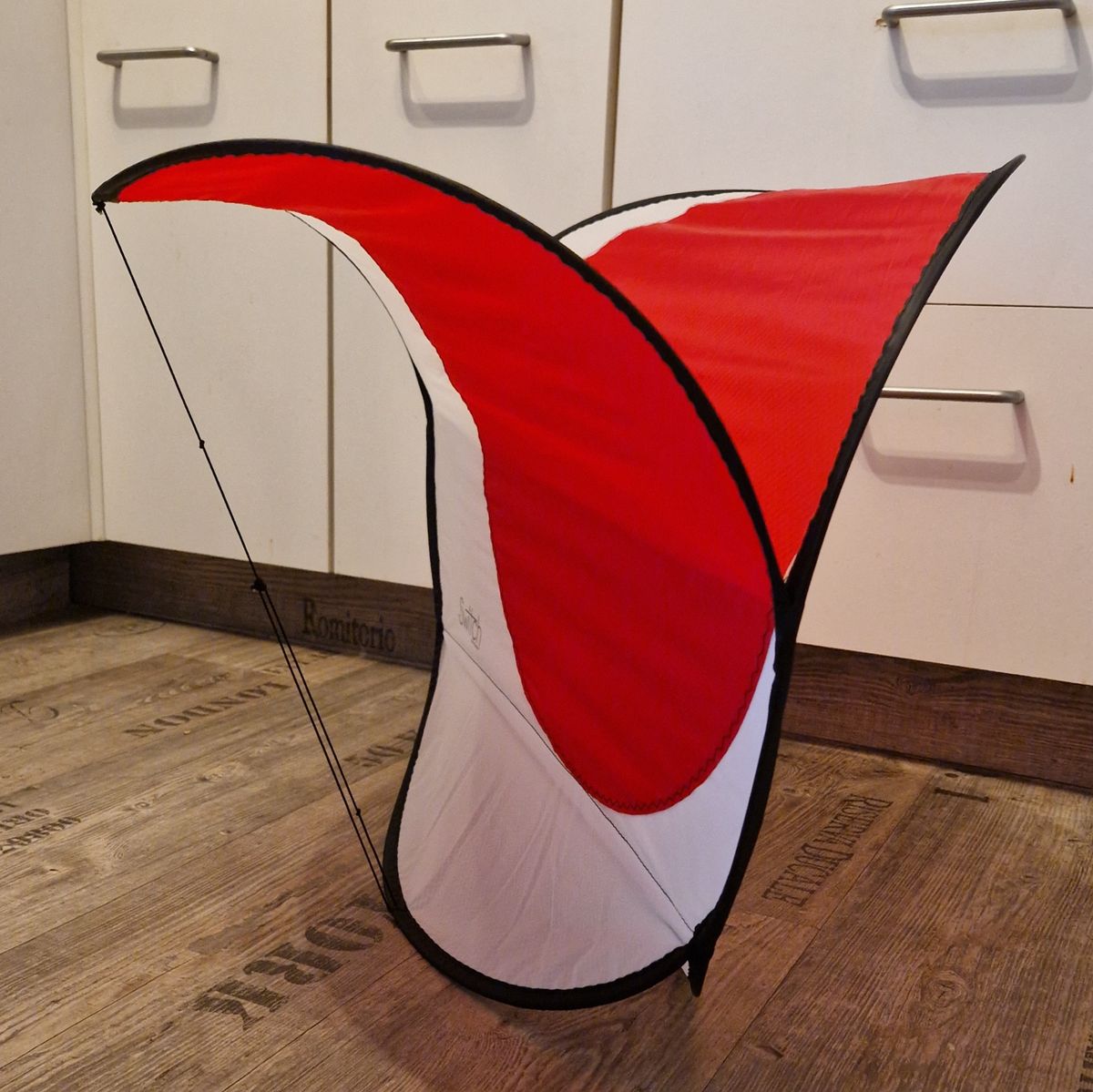 Um den Krebs als Leinenschmuck zu benutzen, kannst du zusätzliche Schnüre an den Augen anbringen, die weiter oben als die vorhandene Waage an der Flugleine von deinem Drachen eingehängt werden.