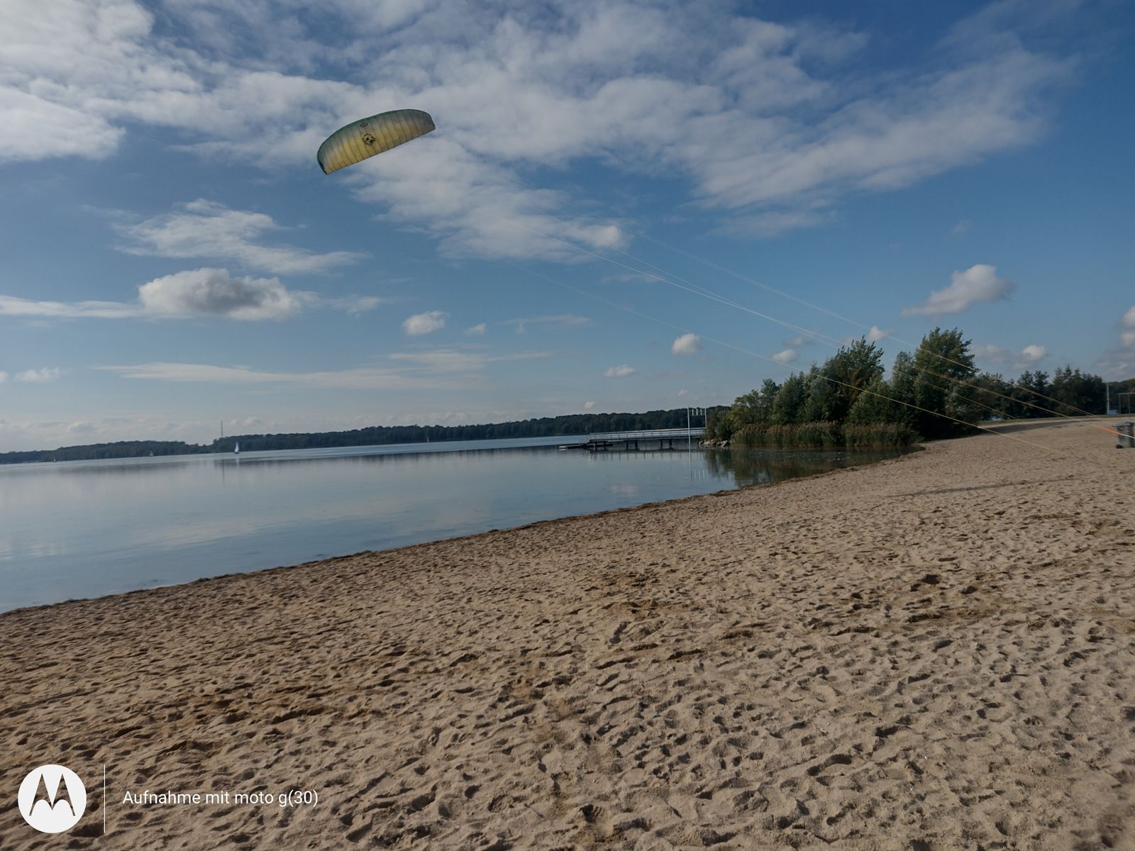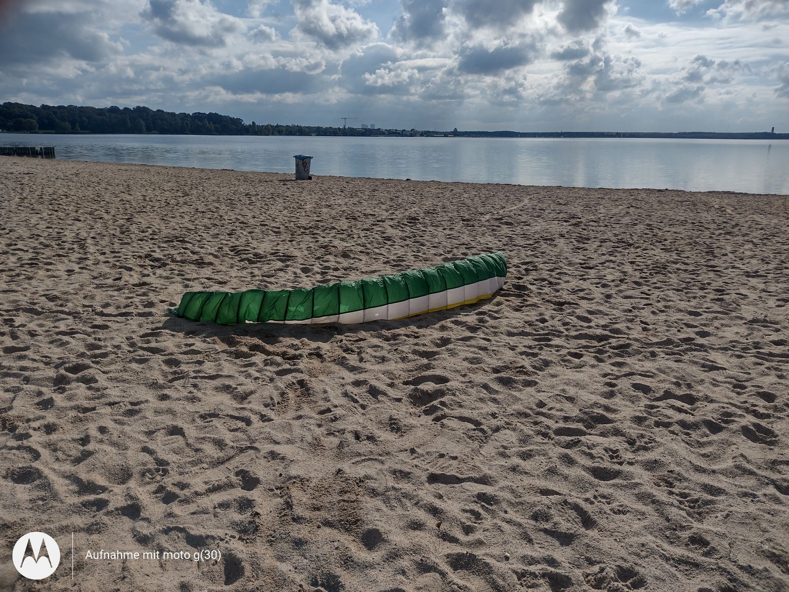 Heute habe ich mir einen lange erhegten Traum erfüllt. Mit dem Tauros von Spacekite liebäugele ich schon länger. Als ich ihn in der Börse gesehen habe, kurz Rücksprache mit der besten Frau gehalten. Auch ihr gefällt die Farbkombi. Zum Glück konnte ich den Versand sparen, weil Mike 70 quasi um die Ecke wohnt. Der Kite ist in einem top Zustand, obwohl schon etwas älter, und gut behandelt worden, sowie recht wenig geflogen.