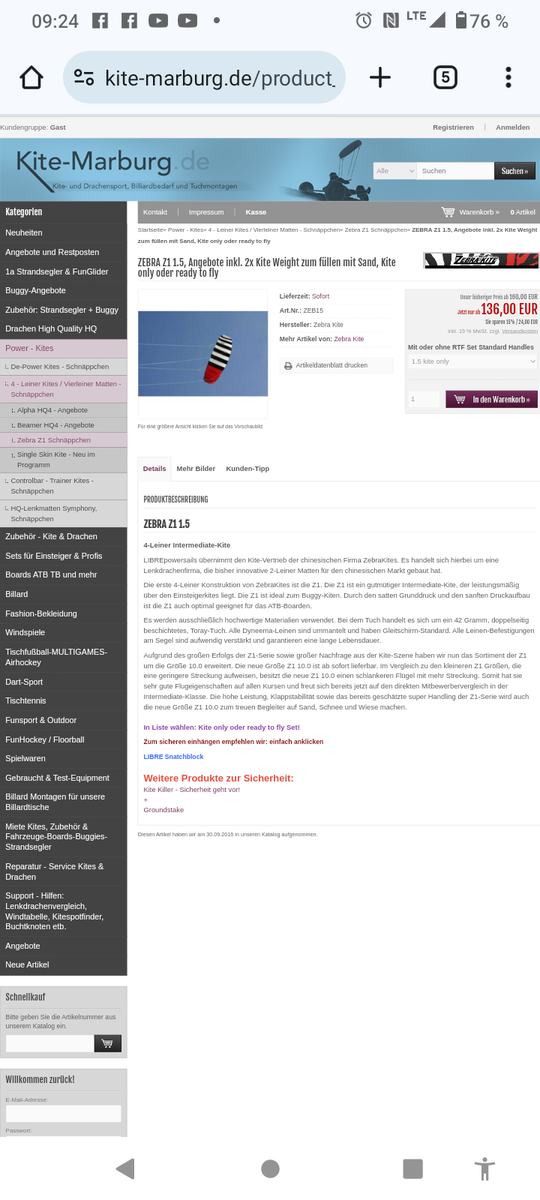 auch ich konnte bei Kleinanzeigen zuschlagen. Hier sind die Drachen Carat, X - Rave und Devil Wing ebenfalls in einen hervorragenden Zustand, nicht zu glauben das sie so alt sind. Ein unglaublicher fairer Deal. Danke an die Vorbesitzer.Habe nie geglaubt das ich einen Carat mal gebraucht in so einem so sehr gutem Zustand bekomme. Die andern beiden sind ebenfalls für mich neuwertig. Freue mich wie ein Schneekönig