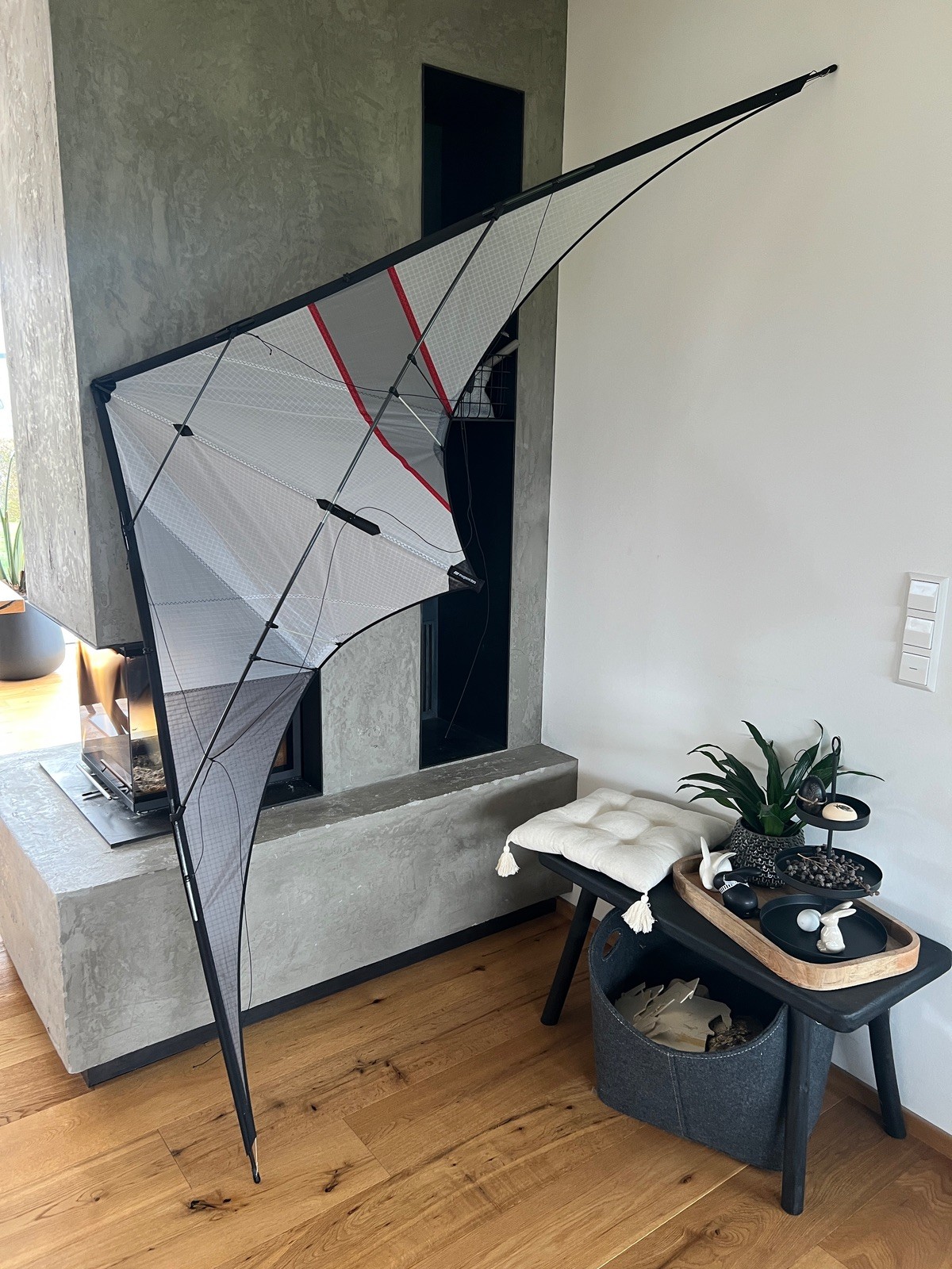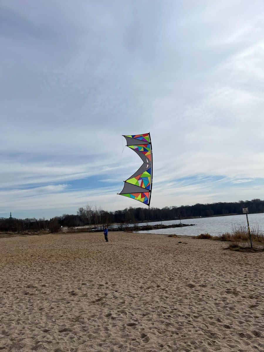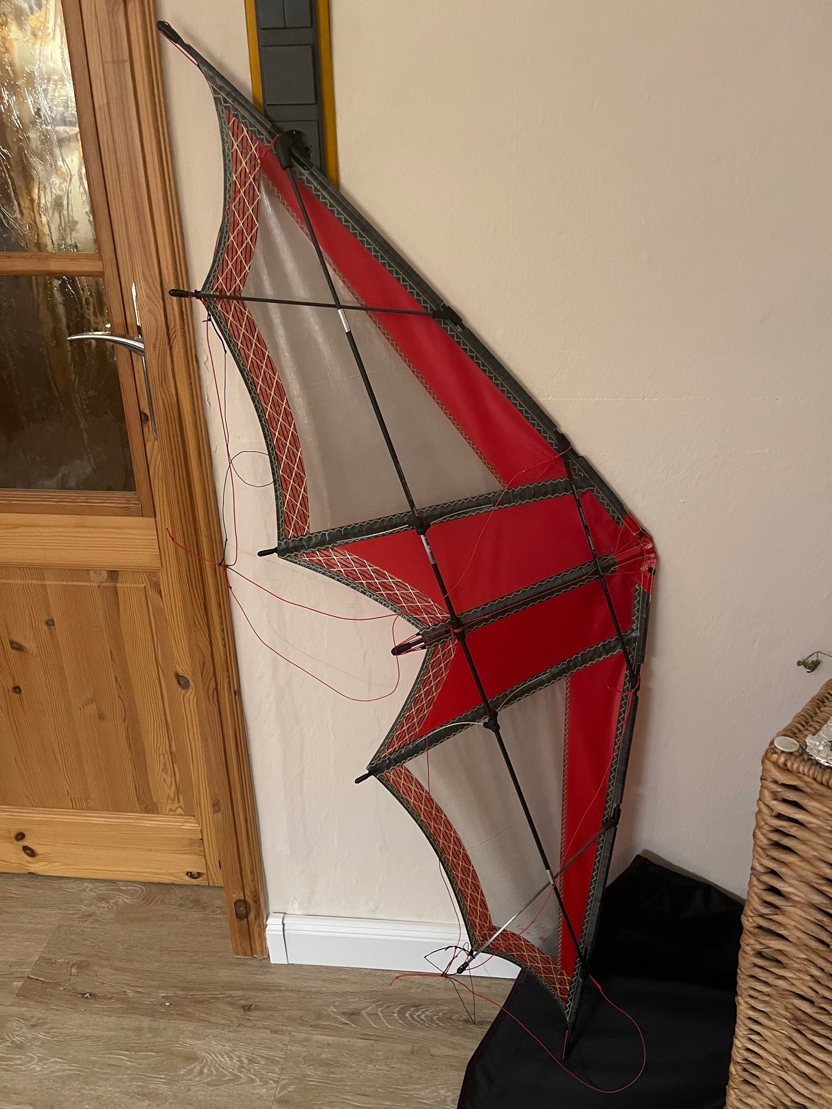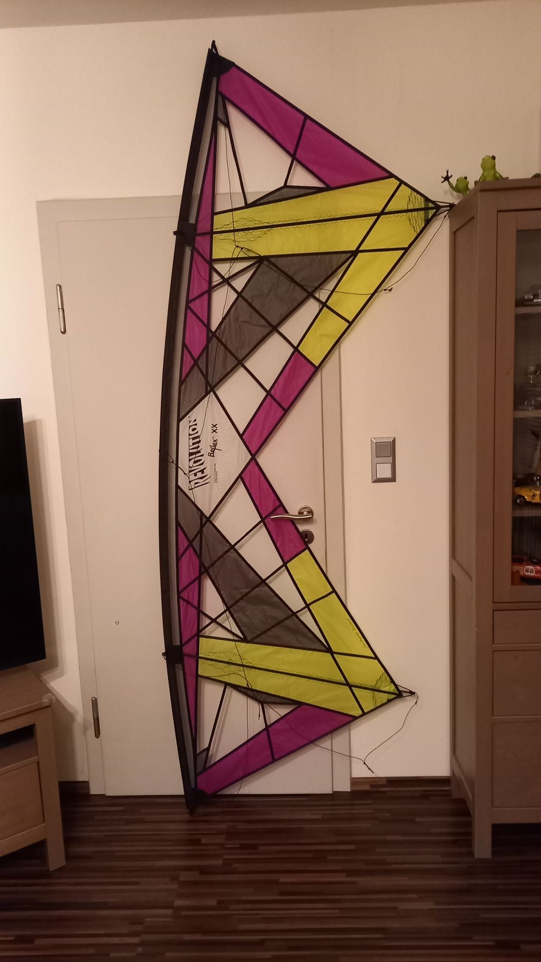 Moin ist schon imFebruar hier angenommen. Reflex 140. Zur Vorgeschichte ich habe letztes Jahr im April diesen Drachen zum ersten Mal gesehen und war schockverliebt. Hatte aber bis dato keine Erfahrung mit solchen Drachen. Thomas (Speednaedl) kennen gelernt. Er meinte ist alles kein Hexenwerk und man könnte den Reflex 140 so bauen das er einfacher zu starten und nicht so scharf ist. Mir war auch wichtig das er hier für unseren Wind auch früh zu fliegen ist, sowie das er nicht so kompliziert auf zu bauen ist. Was soll ich sagen voll abgeliefert. Zu der Näh Qualität brauche ich nichts zu sagen (1a). Alles andere war wie vor einem Jahr besprochen ohne das Thomas sich Notizen gemacht hat. Ich dagegen habe alles vergessen und das Teil beim ersten Versuch gleich geschrottet. 🤦🏼 UQST. Mein Glück war es das Thomas Anfang April hier oben im Norden war und mir angeboten hat mich noch mal einzuweisen. Das war nun letzte Woche und ich kann meinen neuen Drachen vorstellen, weil ich noch einmal eine intensive Einweisung bekommen habe (danke noch mal für die Zeit Thomas). Gleich beim zweiten Versuch geklappt konnte ihn auch immer wieder einfangen wenn er mal ausgebrochen ist. Konnte an dem Tag ausgiebig üben. Das ich sicher geworden bin. Logisch wird es noch eine Zeit dauern, aber es gibt nichts schlimmeres wenn einem der Stift geht bei jedem Start. Das ist nicht mehr so.