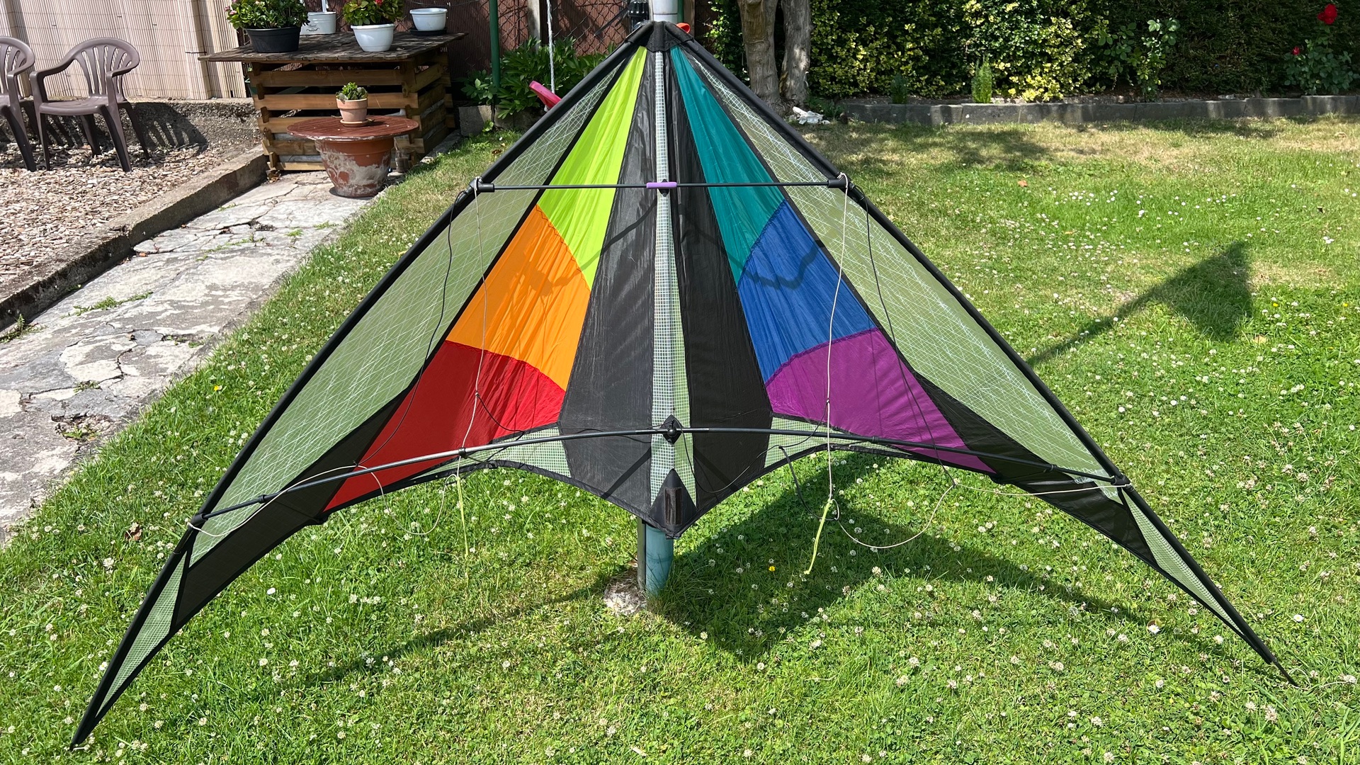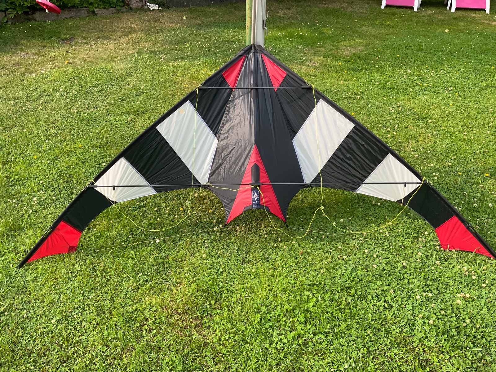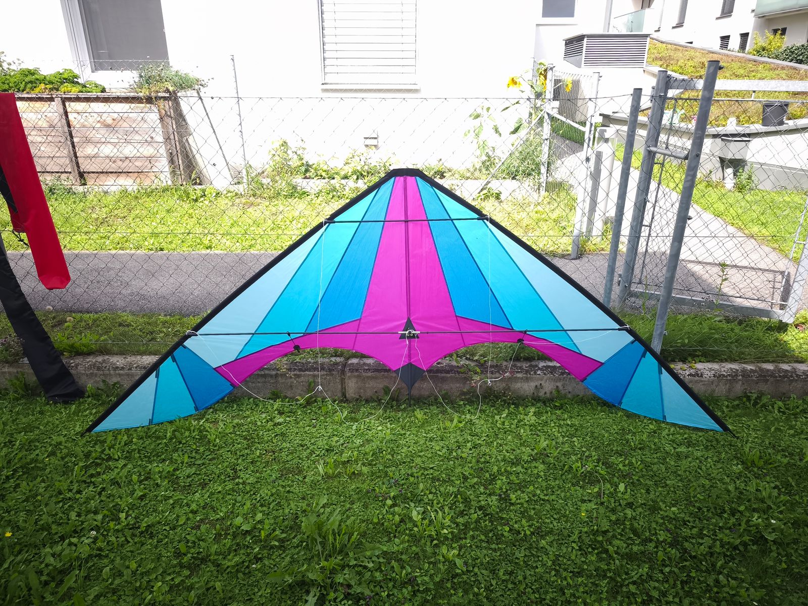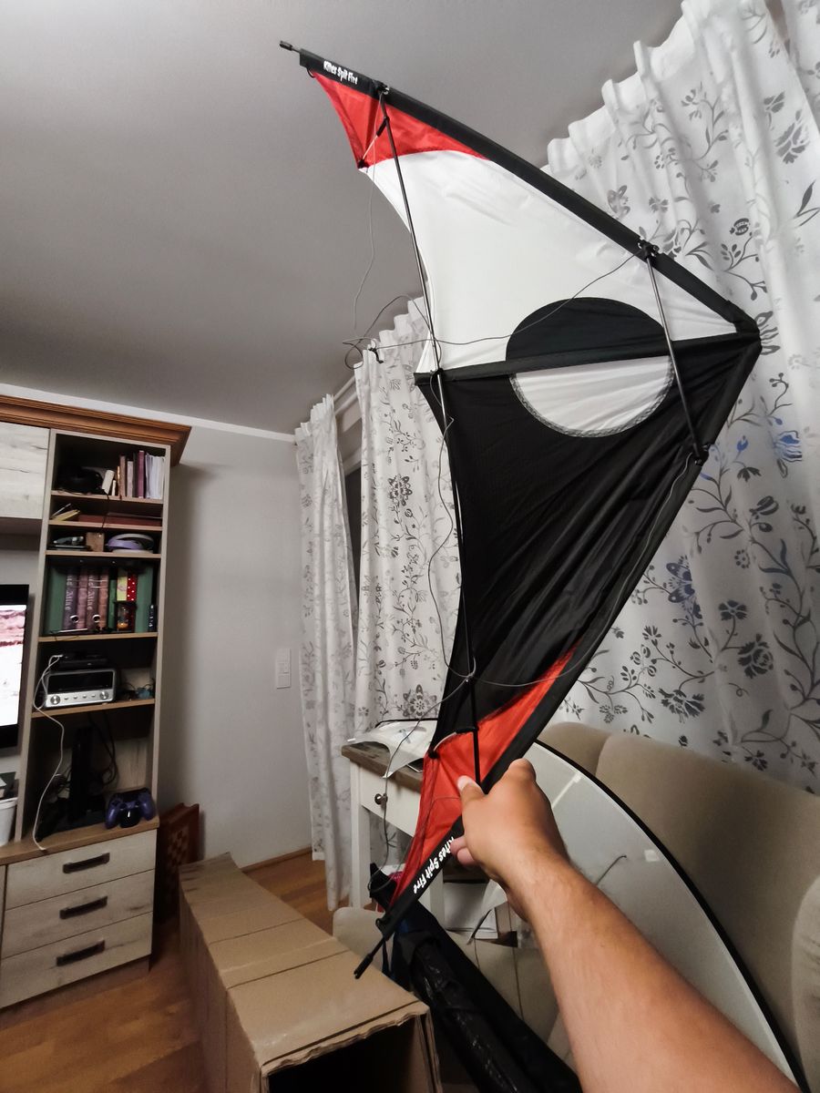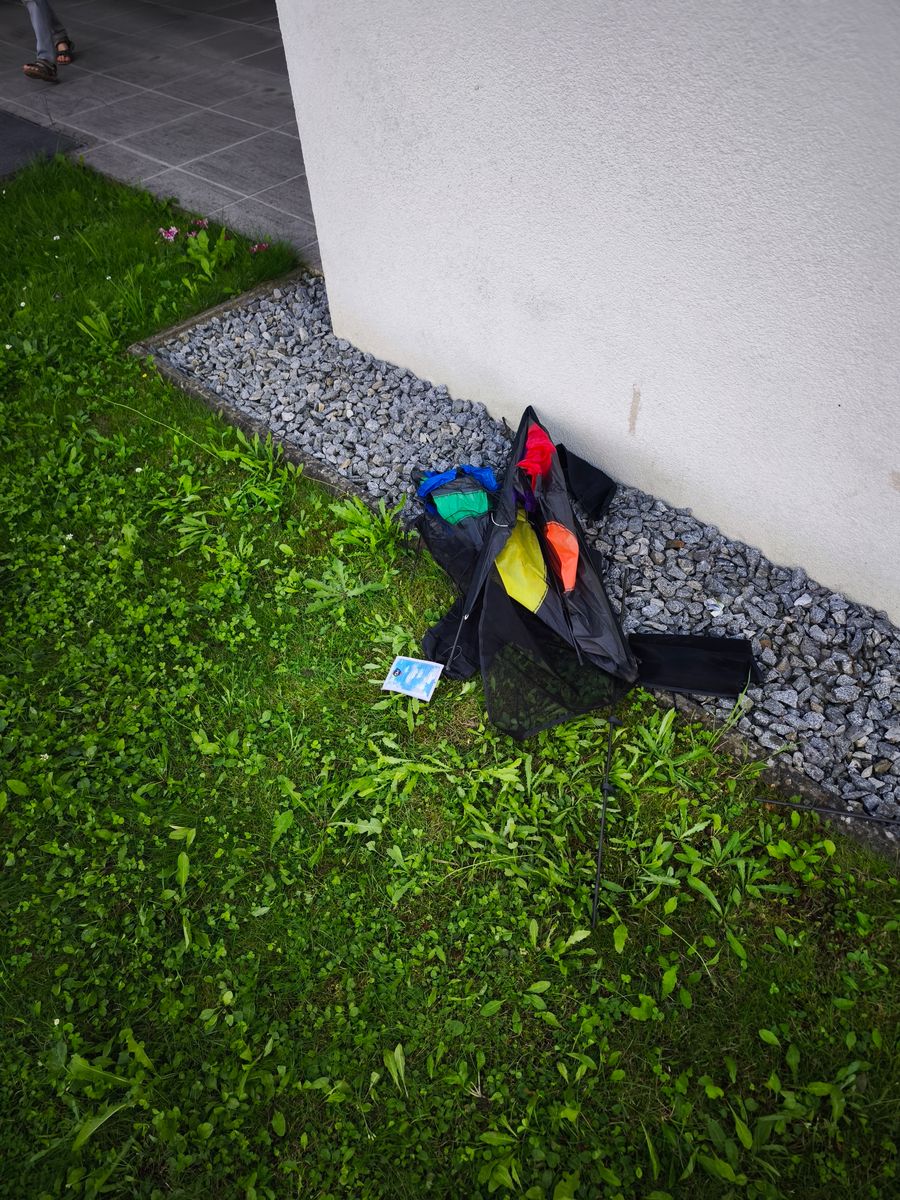 Eigentlich wollte ich ja auch noch meinen neuen, endlich wieder einen gefunden, Phönix herzeigen. Nachdem ich bei der Wiederbeschaffung schon drei Mal mit einer überraschenden Leiche beglückt wurde, war die Hoffnung diesmal groß...naja jetzt sind es dann derer Leichen 4. Diese hat jetzt einen 25cm langen Riss im Segel, der freundlicherweise mit Gewebeklebeband verschlossen wurde. Hab mir dann nicht mehr die Mühe gemacht ihn aufzubauen, trotzdem hier ein Bild.