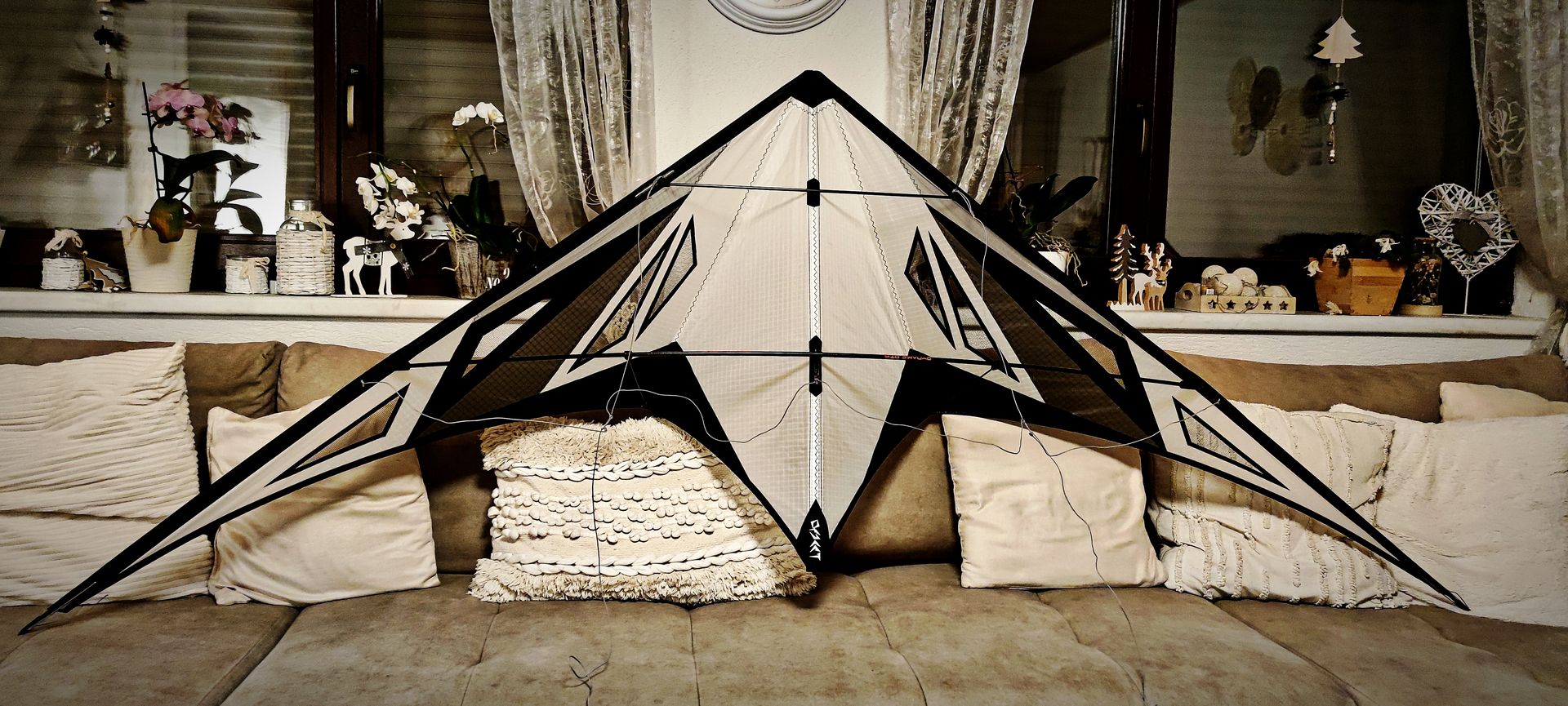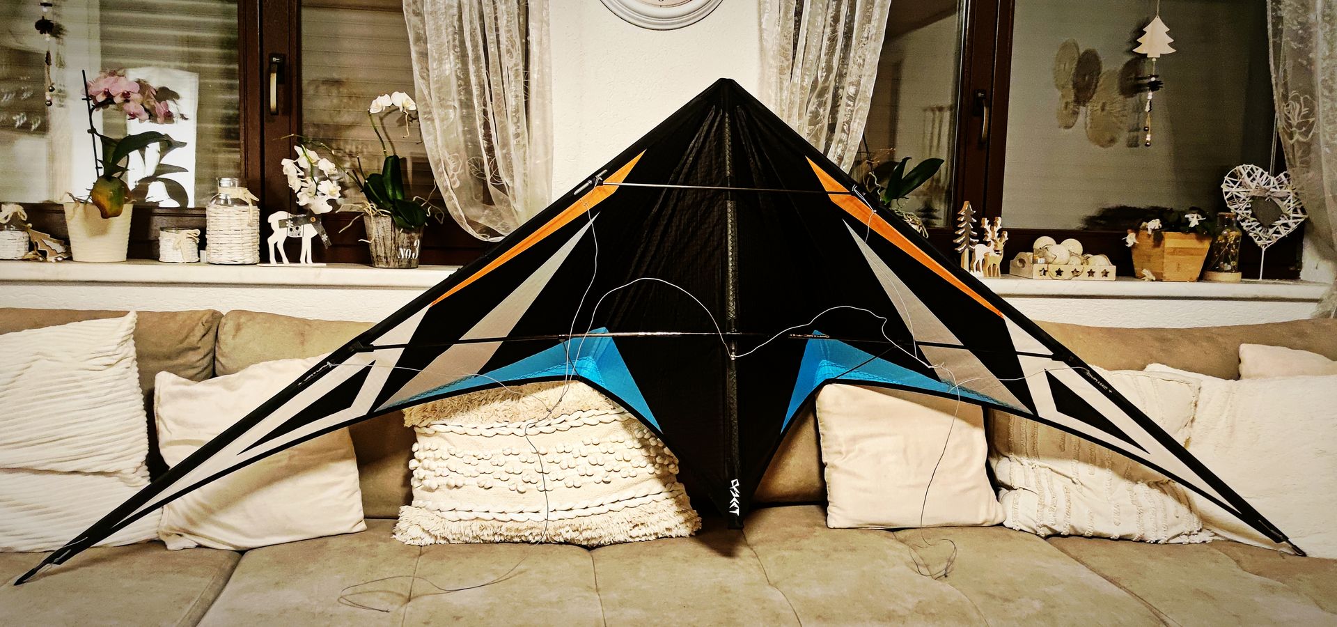 Diesen Spiderkites Elektra 1 habe ich schon länger. War für meine Frau gedacht. Aber heute habe ich von Herrn Fokken erfahren, dass er 1 von nur 14 in dieser Farbkombi ist. Zum Glück damals nur für das Bild montiert und noch nie geflogen.