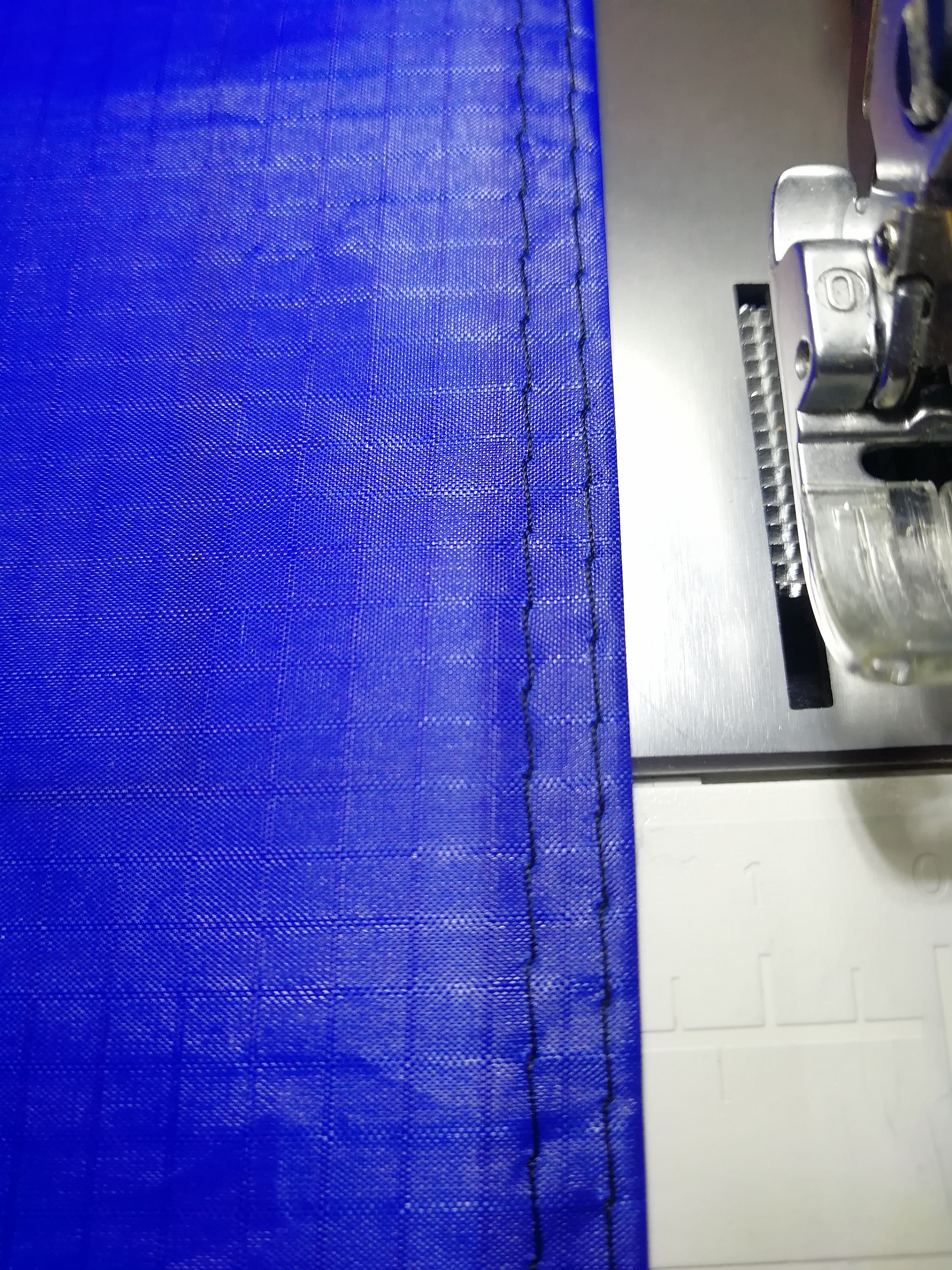 Testest du die Fadenspannung an einfachen Tuch oder an der Segelmachernaht? Einfaches Tuch zieht sich viel schneller zusammen, als die Segelmachernaht. Ansonsten auch mal die Spannung vom Unterfaden an der Kapsel kontrollieren. Nur wenn du die Kapsel am Faden hüpfen lässt, darf diese ruckartig etwas nach unten rutschen.