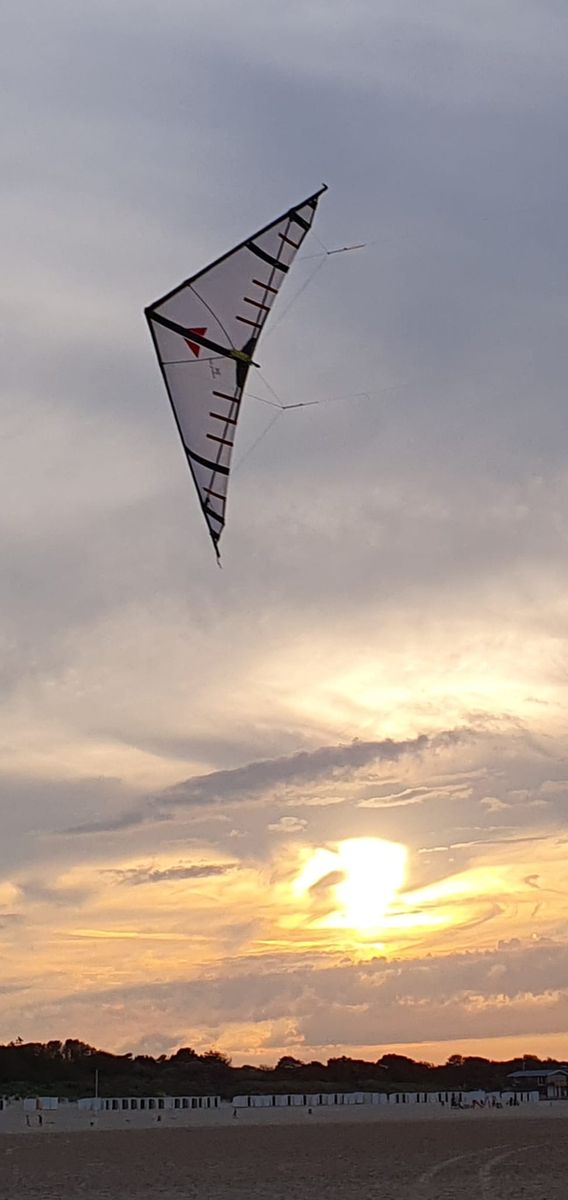 Erster Start - locker angerissen und der Kite sauste ohne Schlenker in den Zenit - wohl ziemlich flach eingestellt. Der Eindruck bestätige sich im ersten richtigen Luftloch, in dem der Cougar schlagartig wegklappte. Also drei Millimeter steiler. Der Start wieder wie eine Rakete, der Flug etwas stabiler, aber auch jetzt klappte er bald wieder weg. Also noch einmal ein paar Millimeter steiler. Nun gab es einen kurzen Stall mit Schlenker nach dem Start, der aber immer noch sehr einfach von der Hand ging. Es dauerte auch eine ganze Weile, bis der Cougar nach viel druckvollerem Flug in einem Luftloch wieder wegklappte. Und ich packte noch einmal 5 mm drauf. Jetzt musste der Cougar nach dem Start schnell mittels Loop abgefangen werden, zog sich dann aber schnell in Strömung. Das Flugverhalten war viel satter und ein Wegklappen trat nicht mehr auf, lediglich noch unwilliges Zuckeln. Insgesamt habe ich den Cougar 25 mm steiler gestellt und so langsam wird er zur Raubkatze. Da er in den engen Loops noch an Druck zulegt, wird er sicher noch ein paar Millimeter vertragen, aber das Finetuning erfolgt demnächst an der See.