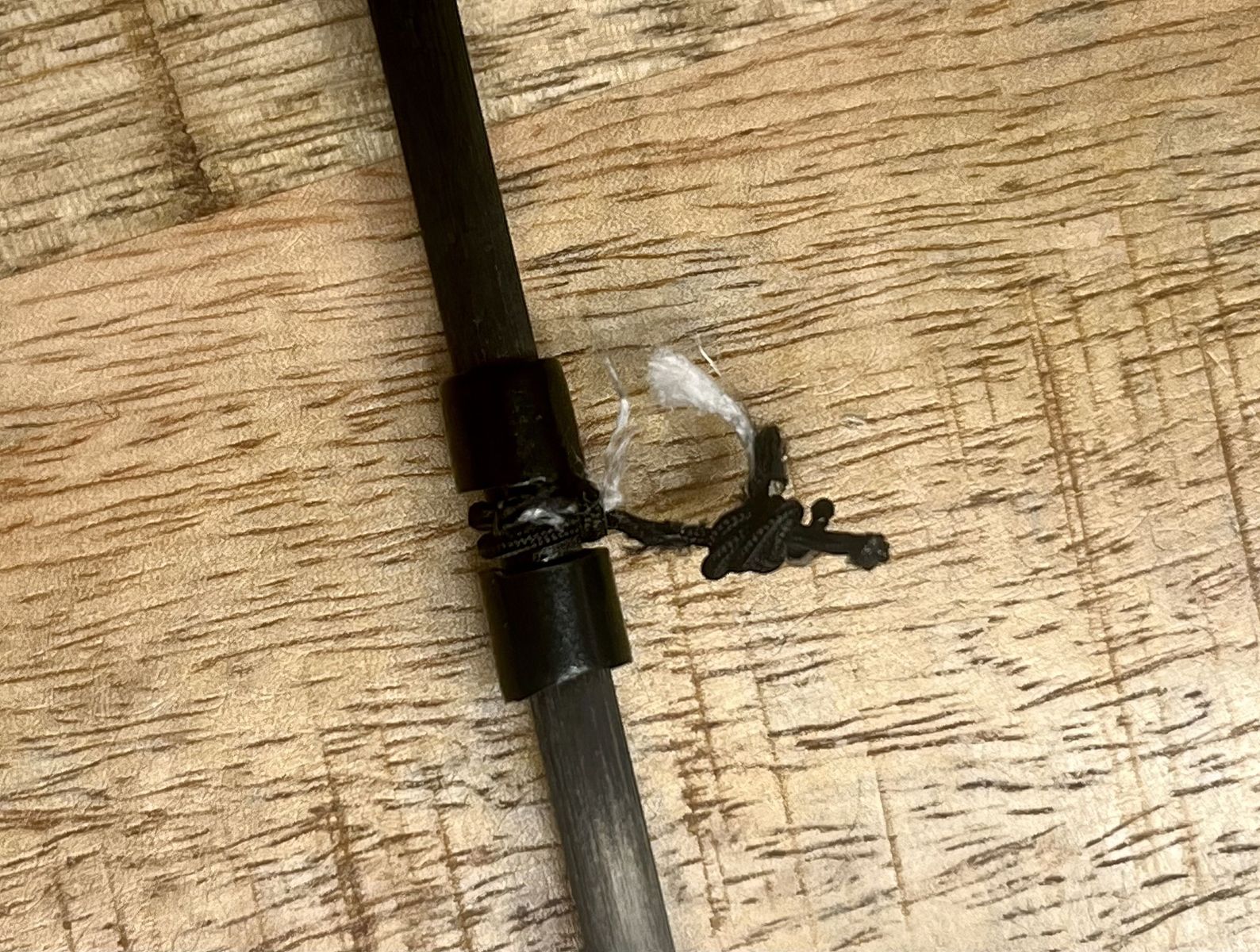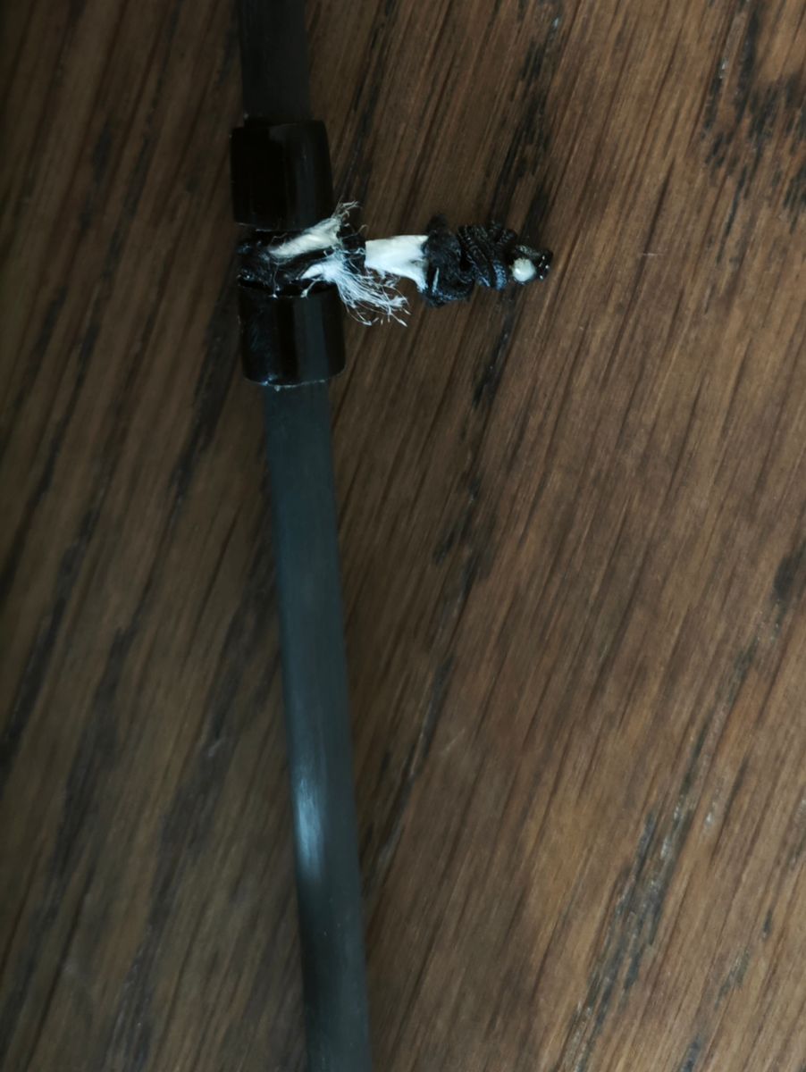 Da ich nach meinem letzten Flug bemerkte, dass mein Schnurkreuz eh schon fast durchgerissen ist, hab ich es mal eben durchgeschnitten ![]()