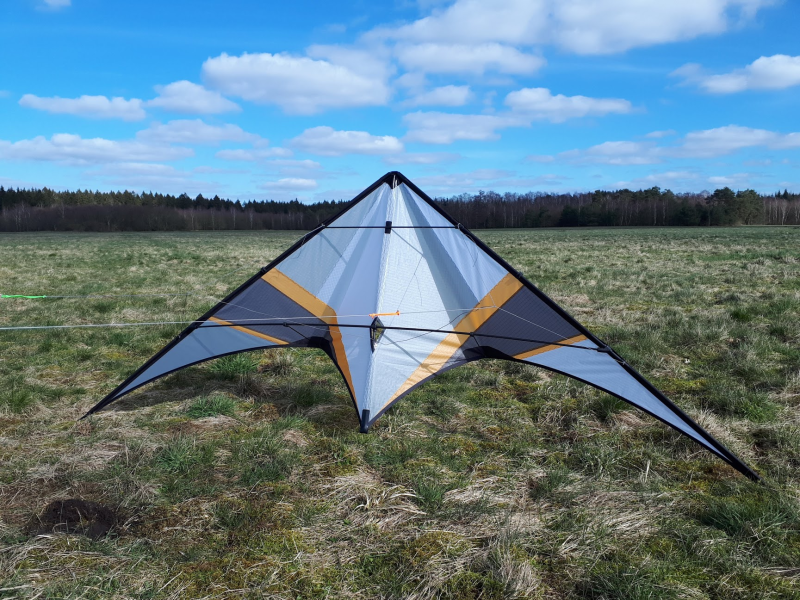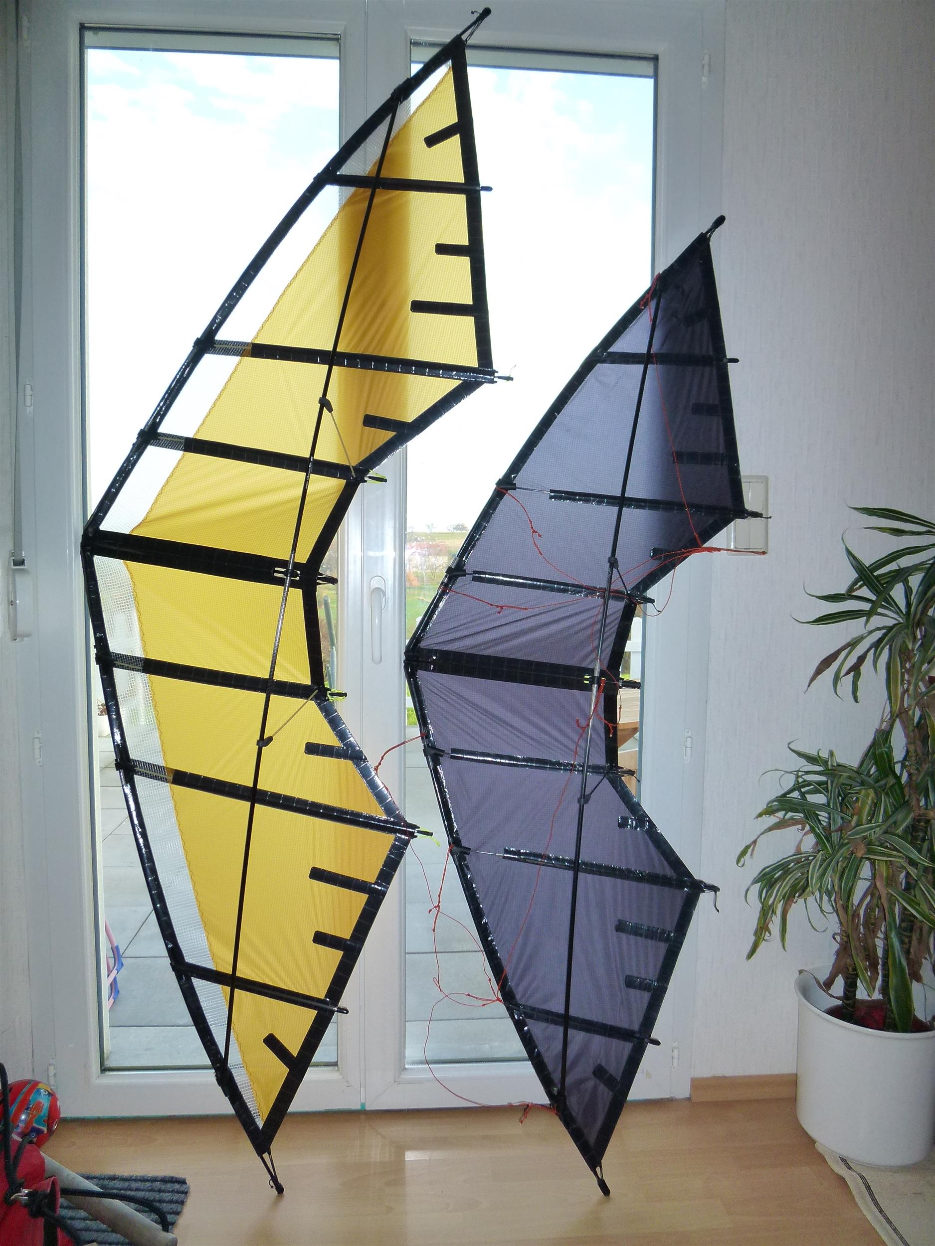 Da wird die Leitkante eher brechen als beim Reckoning von Mark , da an seiner Entwicklung der Verbinder am Ende der Leitkante sitzt .( kleinerer Hebel )Etwas Abhilfe an dem Drachen oben : Ein Inlay , also ein Stück Stab als Verstärkung im unteren Bereich der Leitkante.