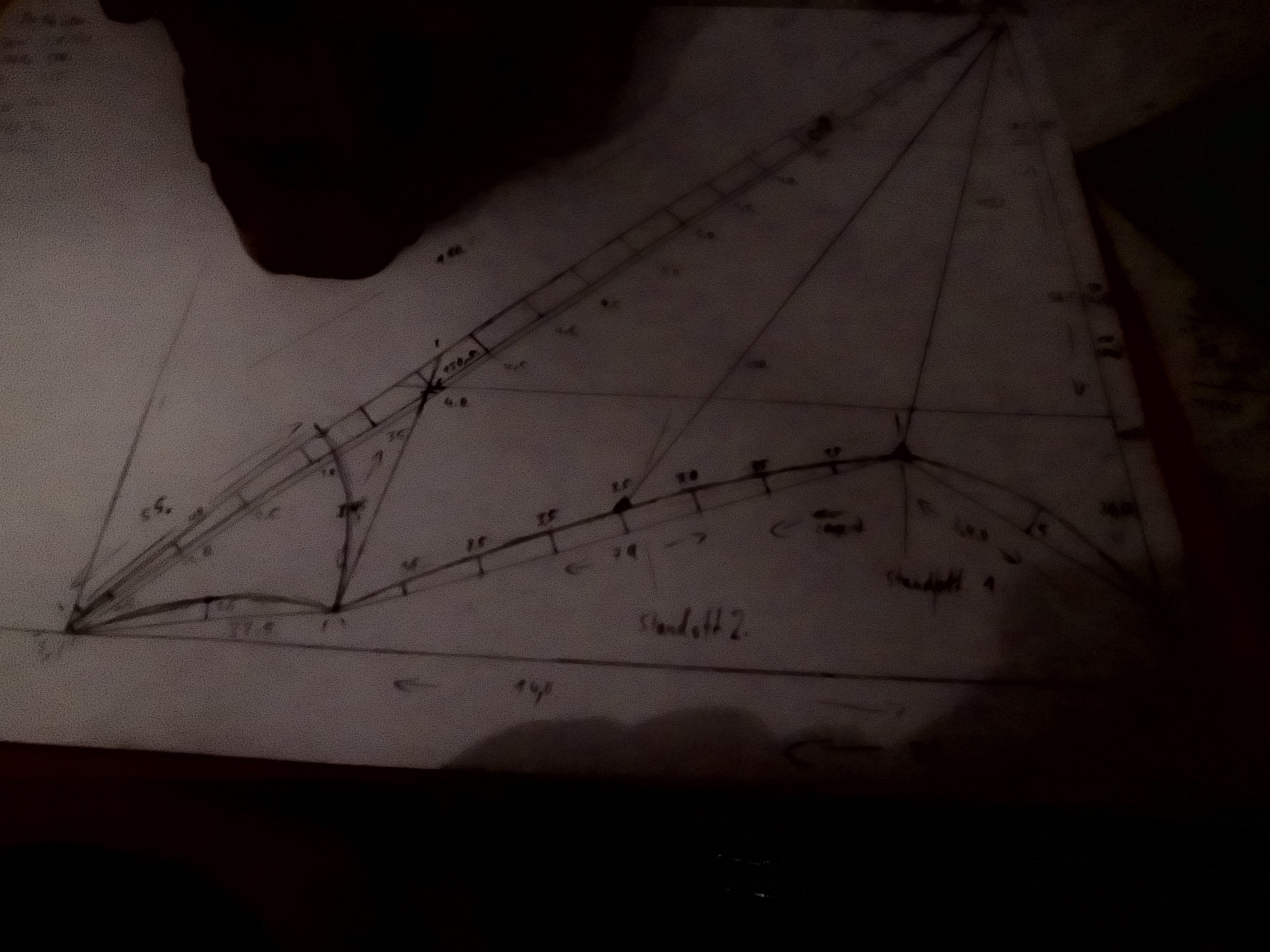 Spannweite 2,8m Kiellänge 1,20m. Bessere Fotos hab ich leider nicht. Aber es hat was von alten Zeichnungen auf Pergament.