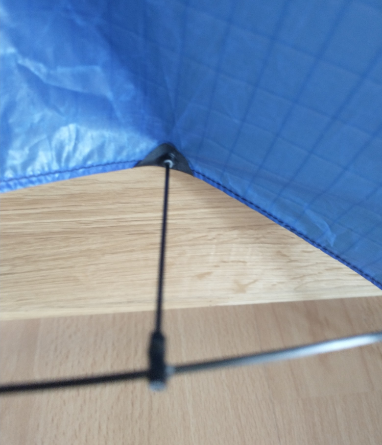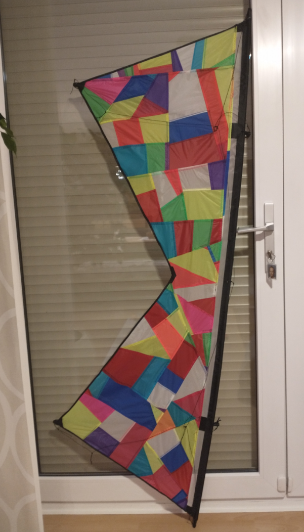 Hatte das schon fertig genähte Segel nach ca. 20 Jahren in meiner Tuchrestekiste wieder gefunden. Verbinder aus Isolierung von 1,5² Kabel gebastelt und Gestänge eingepasst, noch die Waage klöppeln und dann isser ganz fertig .Jetzt sind es 3 , könnte eigentlich ein Gespann werden, der eine hat 2 mm CFK, sollte reichen hängen ja nur 25 Gramm dran