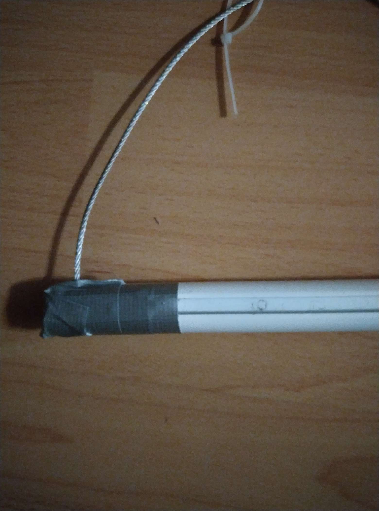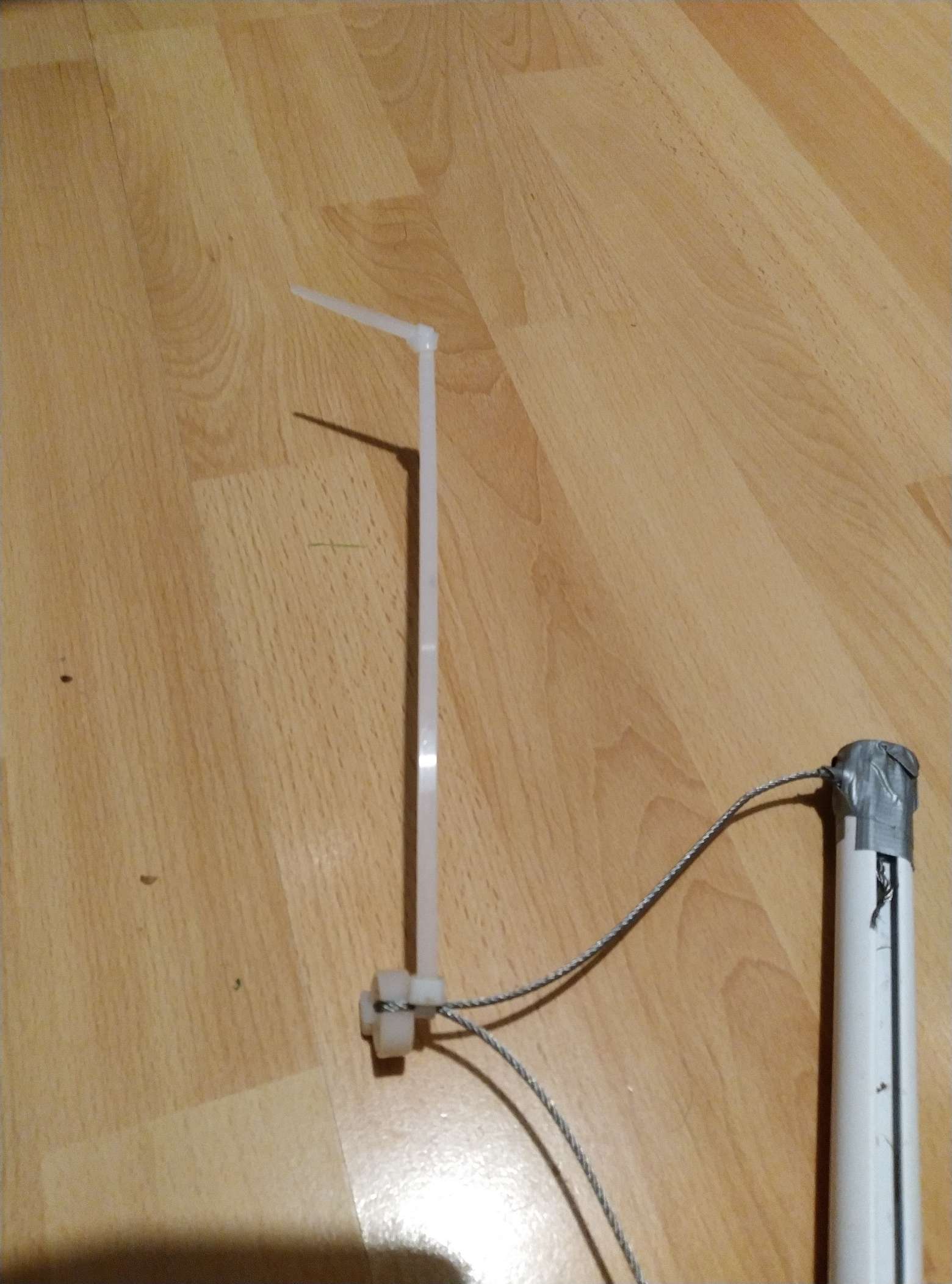 Material: 2mm geflochtenes Drahtseil an ausgedientem Gardinenstangen-Aluprofil.