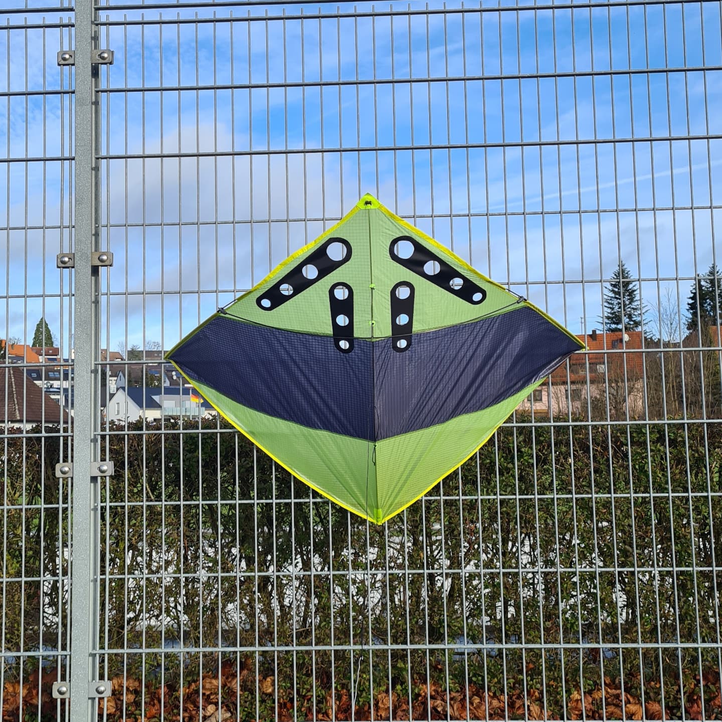 Bei dem heutigen Schmuddelwetter hatte ich nix besseres zu tun, als meinen neuen Speedy 200 fertigzustellen. Er heißt RAUDI und ist aus Mylar und ein wenig Icarex. Auf den Gazestreifen unter der Leitkante habe ich verzichtet. Bestabt ist er mit 300er Aurel Agil in der Leitkante sowie Skylon Edge 500er (außen) und 800er (innen) als Vertikalen.