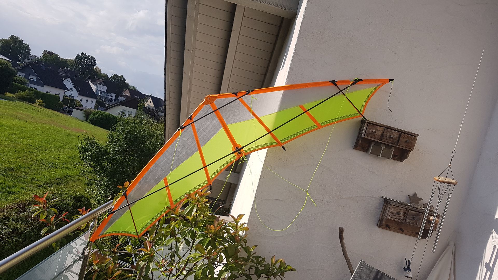 Konnte den Flügel inzwischen auch im Urlaub bei 4-5 Bft fliegen an 30 m- DC40 Leinen