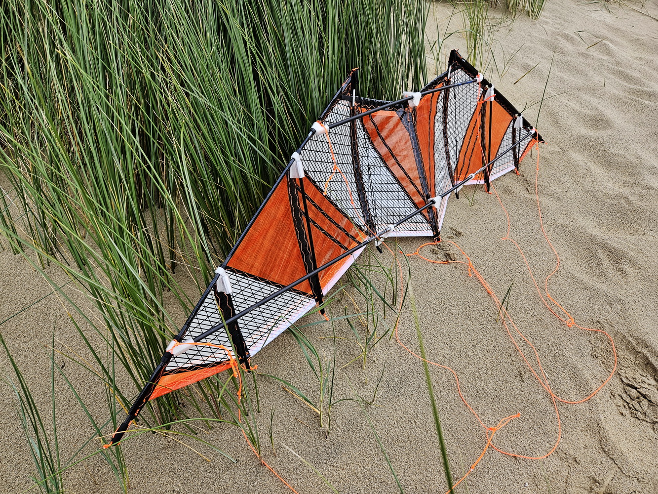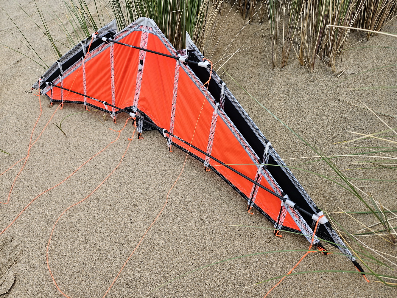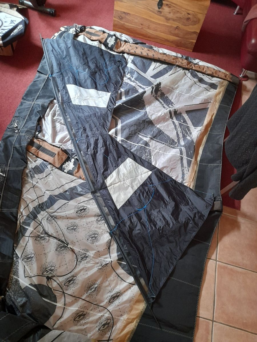 Es war einmal ein Rev 1,5 , der wurde nicht mehr geflogen , aber das Design wollte ich für mich doch gerne erhalten . Also habe ich das Design aus dem Rev extrahiert und einen neuen Kite gebaut . Ein Zimtzickenshape leicht verlängert , damit das Design darauf passt und aus dem Standard - Design ein Vented gemacht