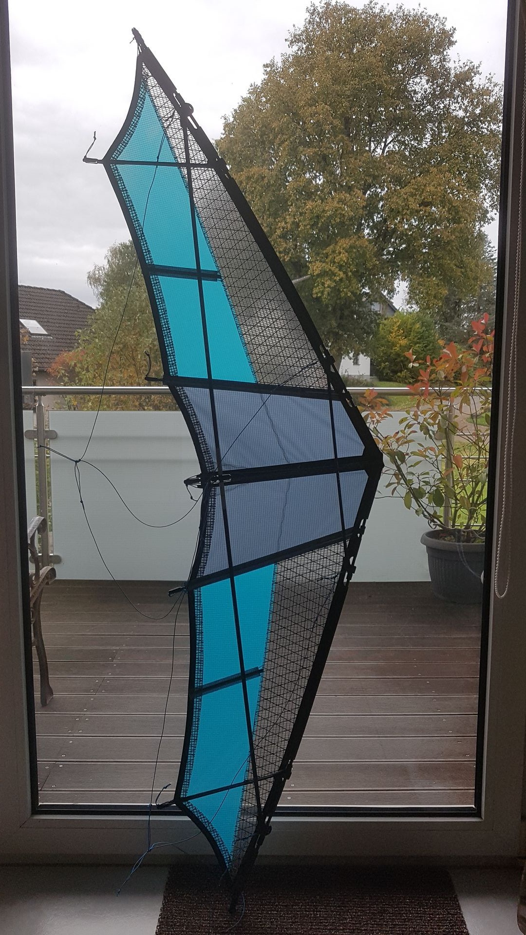 Tuch ist Icarex, bestabt mit Skylon Edge 6.2 350 in der Leitkante und 500 in den vertikalen. Ohne waageschnur (die fehlt noch) ein Gewicht von 214 Gramm.