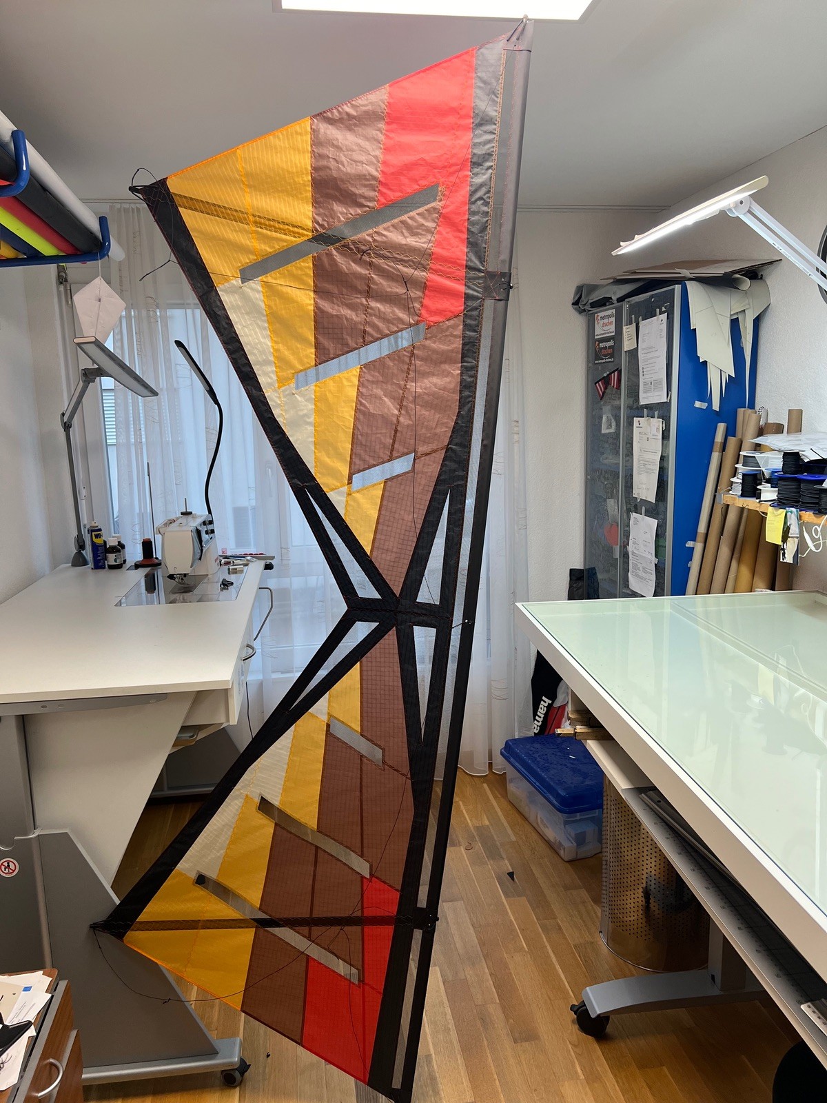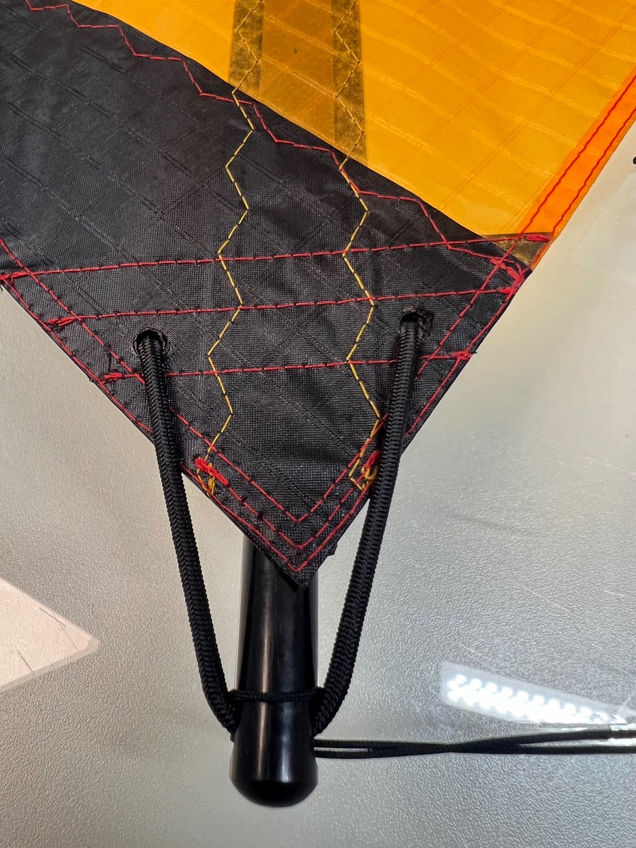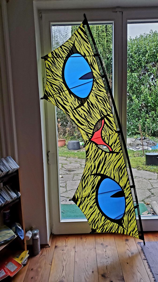 Mal sehen, ob ich alles richtig gemacht habe. Bei der Waage bin ich mir nicht sicher. Die Punkte der Vertikalen liegen zwischen einem REV und Endor. Leitkante ist aus Stoff und nur an den Anbindungen aus Dacron. In der Leitkante Nijora Tokala 600 die Vertikale 700. 168g
