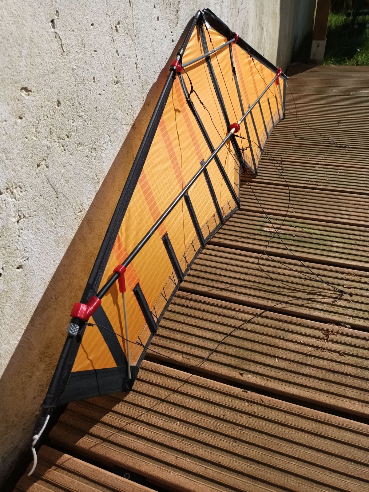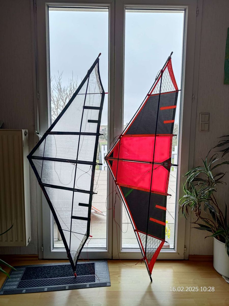 Die Segellatten habe ich dem Vorbild vom Dawn geändert. Da lässt sich der Kite besser zusammenlegen und finde sieht so auch etwas schicker aus.