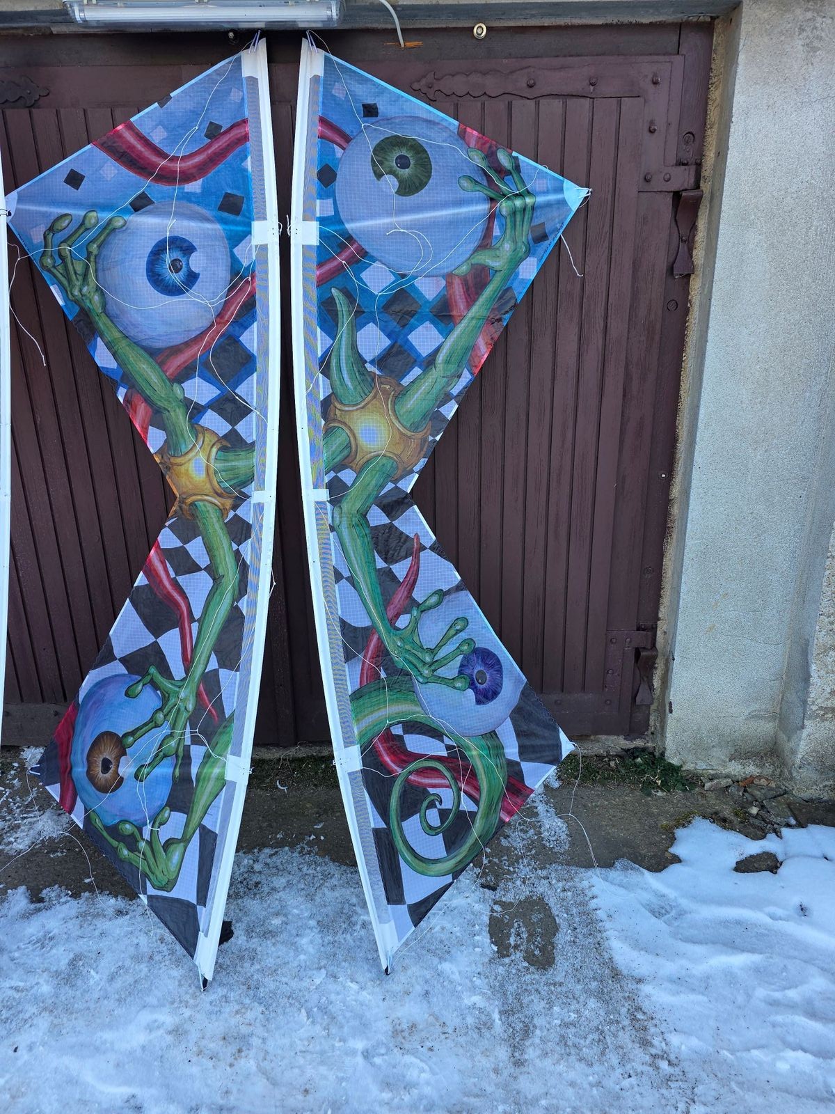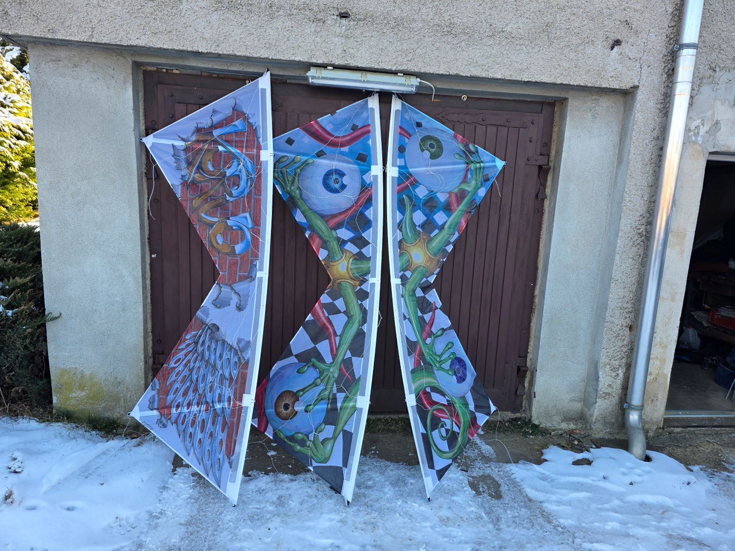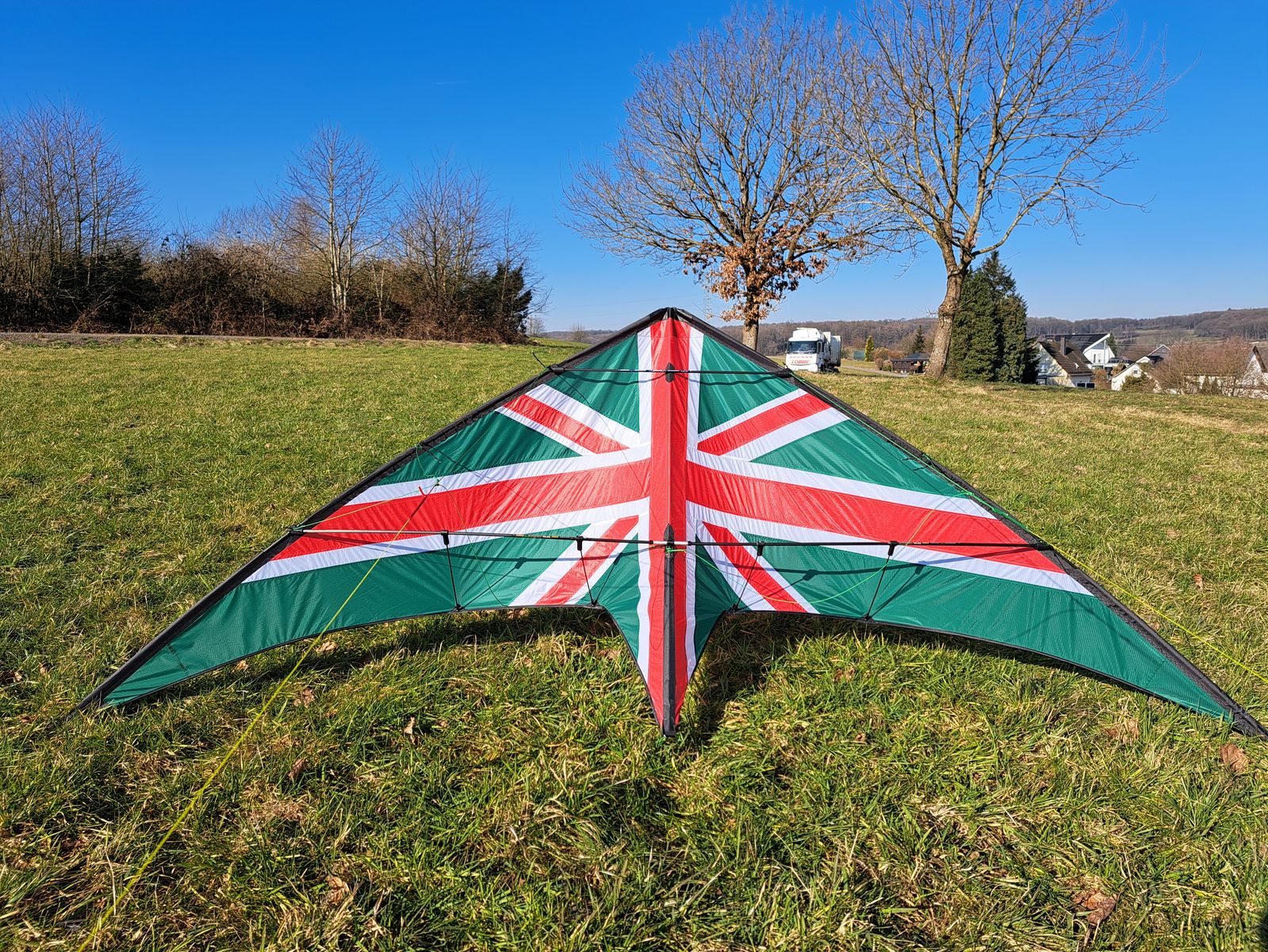 Ich habe bei diesem Kite mal das dicke Mylar als Vertikalhinterlegung ausprobiert, lässt sich noch ganz gut Rollen.