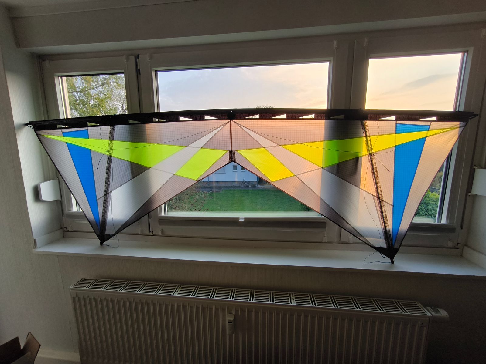 Das dritte Segel liegt schon fast fertig im Wohnzimmer, wartet auf das Zusammennähen der Segelhälften, anbringen der Verstärkungen und das Bestaben.