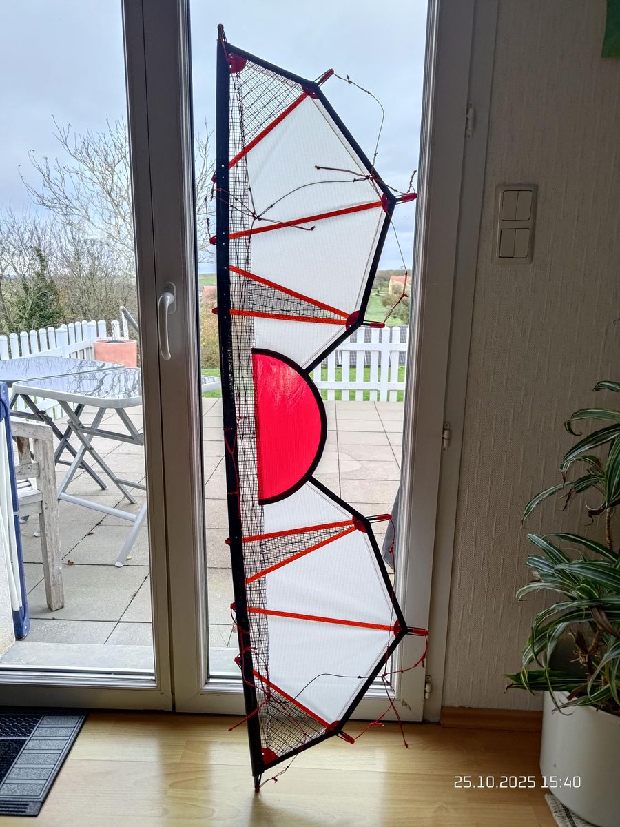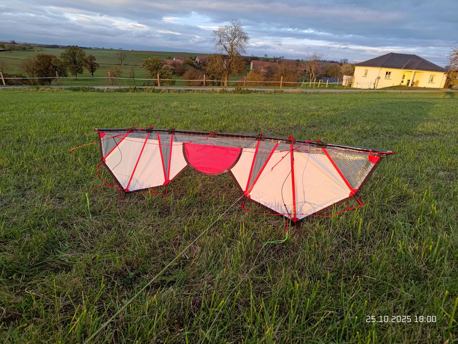 Die einzigen Drachen dieser bzw. ähnlicher Bauart (String-Rev, String-Skyknife u.a.), die ich geflogen haben und die nicht so zum Flattern neigen, sind der Frame von HeinzKetchup und sein Vorbild aus den USA, die haben in der Schleppkante keine Flächen mit parallel verlaufenden Kanten, sondern Dreiecksformen und gespannte dünne Leinen, welche ich mal nicht als Fläche betrachte.