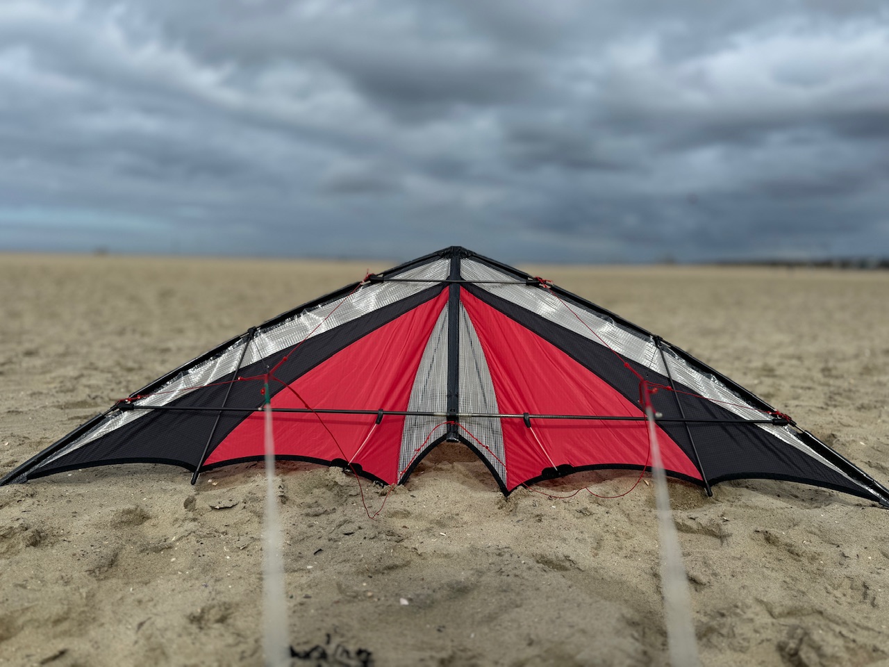 Armageddon – The Next Level ???? - Drachen Bild [URL:https://www.drachenforum.net/galerie/index.php/Gallery/] nicht mehr verfügbar - @All Die Vorgeschichte ……. Vor nicht all zu langer Zeit erblickte eine kleine feine Drachen Manufaktur „das Licht der Welt“ und so manch einer von uns saß da mit offenem Mund und staunte nicht schlecht was da so neues auf uns zukommen sollte …… Armageddon, Gonzo, Katana, Sakura & Trinity. Richtig …… gemeint ist die Drachenschmiede Bretten. Meine Geschichte nahm ihren Anfang in Frankreich……. Anfang Oktober Nach langem hin & her klappte es endlich & ich sollte die Gelegenheit bekommen ein paar der Prototypen zu fliegen, genauer die Armageddons & Gonzos. Leider hatte wohl Mark (Mark O 2) vergessen die Windrechnung zu bezahlen & somit wurde das eher ein Fotoshooting als ein Testflugtag. ;-) Nun hatte ich das große Glück das Mark so nett war & mir einen der Armageddons zum Testen mitgab. An dieser Stelle sei nochmals erwähnt das es sich um den Prototypen handelte d.h. den Kite gab es nur ein mal ! Wenn der Verloren geht ….wars das ! Eigentlich brauchte Mark die Kites zum abstimmen der ersten bald folgenden Serienkites. Nicht des so trotz gab er mit ohne großes zögern den Armageddon 165 in „V“ Version in die Hand & ich versprach feierlich ihn mit Leib & Leben zu beschützen ;-) An dieser Stelle nochmals herzlichen Dank an Mark für das Vertrauen & die Gastfreundschaft bei meinem Besuch ! :H: ;-) Daten/Fakten : Der Armageddon - 165 V (Prototyp) Spannweite: ca. 165cm Standhöhe: ca. 45cm Leitkanten: Exel Cruise 6mm OQS: Exel Cruise 6mm, UQS: 8mm SkyShark (Zweiteilig) Tuch: Chikara / Mylar "Besonderheiten" : -Schwalbenschwanz (besonders weil die Spreizen nicht nur zur Ausbildung/Aufstellung des Schwalbenschwanzes dienen sonder wie 2 „weiter Kielstäbe wirken“ sie spannen das Segel „extrem“ ab.) - Drachen Bild [URL:https://www.drachenforum.net/galerie/index.php/Gallery/] nicht mehr verfügbar - -Knotenleitern an allen Waagenpunkten - Drachen Bild [URL:https://www.drachenforum.net/galerie/index.php/Gallery/] nicht mehr verfügbar - - Drachen Bild [URL:https://www.drachenforum.net/galerie/index.php/Gallery/] nicht mehr verfügbar - -Knotenleiter für den Anstellwinkel/den Windbereich am Kreuz (+ 2 Konten an der OQS für grobe Voreinstellung = Schwachwind/Starkwind) - Drachen Bild [URL:https://www.drachenforum.net/galerie/index.php/Gallery/] nicht mehr verfügbar - -Standoffs in 3 Positionen verstellbar (hat erheblichen Einfluss auf das Flugverhalten, weil damit das Segelprofil „stark“ verändert werden kann) - Drachen Bild [URL:https://www.drachenforum.net/galerie/index.php/Gallery/] nicht mehr verfügbar - -Aufnahme für einen zusätzlichen Standoff um das Segelprofil mehr auszubilden(wird es so in der Serie nicht geben !) - Drachen Bild [URL:https://www.drachenforum.net/galerie/index.php/Gallery/] nicht mehr verfügbar - Mein kleiner Test : Nun hatte ich den „Frischling“ also in der Tasche & es sollten 2 unendliche Wochen vergehen bis ich endlich loslegen konnte, es war einfach kein Wind vorher ! Zum verrückt werden so was !!! Letzte Oktoberwoche Renesse-Urlaub war schon seit März fest gebucht & der Wetterbericht verhieß nur Gutes : 12° - 15° & 4 – 7 Bft ….. Fliegerherz was willst du mehr ? Und so kam es dann auch ………. :H: Am Samstag angekommen, ausgepackt & ab auf den Damm …… Es waren um die 3-4 Bft also optimal um den Armageddon mal an zu testen. Zum Aufbau ist nicht viel zusagen der ging einfach von der Hand auch wenn darauf zu achten war das alles „bis zum Anschlag“ fest & in Position sitzt. Eine gewisse Reihenfolge bei der „Montage“ gilt es zu beachten darauf möchte ich aber nicht näher eingehen. Das bekommt jeder ohne Probleme hin ;-) Der Start erfordert schon etwas „Mut“ & sollte am Anfang besser mit einem Helfer stattfinden. Mit etwas Übung geht es aber auch ohne größere Probleme Solo: Man stellt den Kite aus der Rückenlage auf und läst ihn dann langsam nach vorn umkippen, kurz bevor die Nase den Boden berührt gibt man einen kräftigen Ruck auf die Leinen & legt den „Zügigen Rückwertsgang“ ein damit der Kite Strömung aufnimmt. Bei mehr Wind ist das natürlich deutlich einfacher aber mit etwas Übung war das auch bei ca.3 Bft reproduzierbar. Die Leine 75dNa/35m funktionierte hier am besten auch wenn sie bei Böen schon etwas am jammern war und ich auf die 100dNa/35m gewechselt habe….. Bei der Windstärke wurde schnell klar das der Armageddon aktiv geflogen werden will d.h. er will in der Strömung gehalten werden, mal eben an den Windfensterrand „bissel parken“ ist nicht. Hält man ihn in der Strömung fliegt er wie auf Schienen, ist sehr exakt mit sehr kleinen Lenkbefehlen zu fliegen, baut sehr gut Grunddruck auf , gibt sehr gutes Feedback. Spinns sind nicht so sein Ding er dafür ist er auch nicht gemacht. Mittlere bis enge Loops sind sein Ding & wie Sie sein Ding sind ! Schon bei nur 3-4 Bft zeigt er hier ganz klar wo er zupackt , ich war schon echt erstaunt als er plötzlich, ohne Vorankündigung, anfing immer schneller zu werden. Hat man einmal „genau den“ Loop raus kann man ihn fast „beliebig“ beschleunigen ….. Ich war schon sehr überrascht was der „Kleine“ an Speed zulegen kann . Die daraus resultierende Power war schon beachtlich & so manch ordentlicher „Ausfallschritt“ rette wohl meine 75iger Leine ;-) Nimmt man diesen Speed „mit“ auf die nächste Gerade ist er auch hier echt sehr schnell ! Ich dachte nur „das kann ja heiter werden“ wenn ich den über 5 Bft fliege …….. Am Sonntag Morgen 7 Uhr (ja, richtig, ich bin Frühaufsteher) war es soweit …… Tür vom Ferienhäusle auf & es Kachelte wie nix Gutes ! Keine 15min später war ich auf dem Browersdam ! Es war weit & breit keinen Menschen Sehle …… nur das Meer, der Wind, der Armageddon & meine 120kg im Kampfmontur ;-) Windmaster raus …wahu …. es drücke ordentl