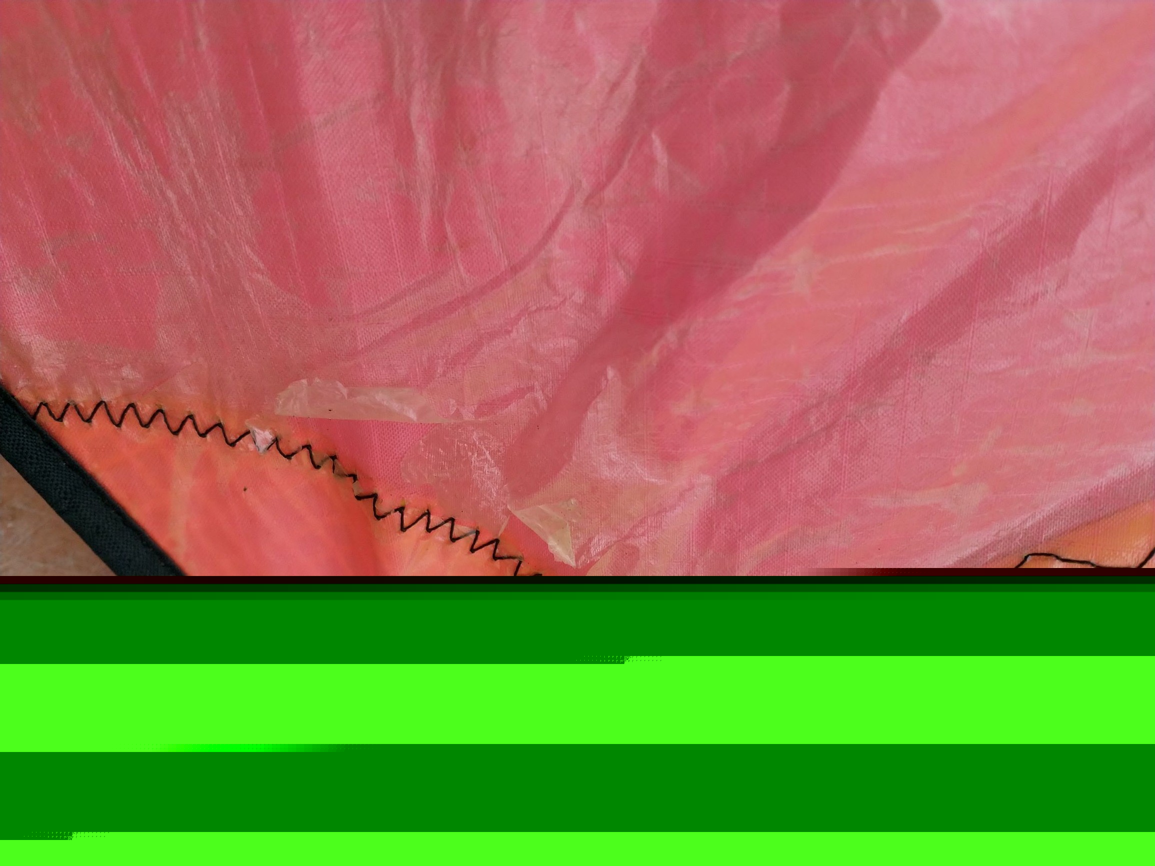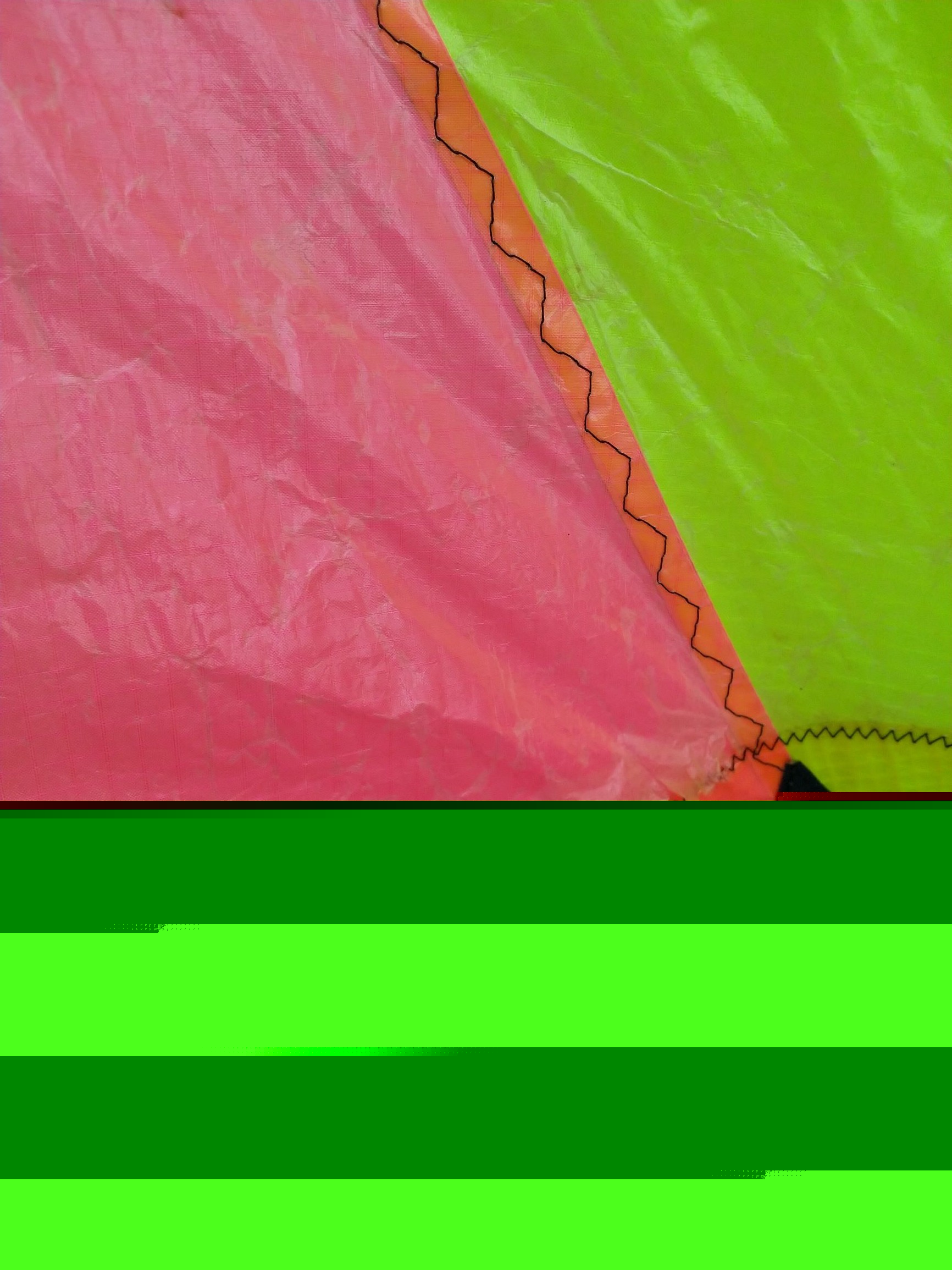 Wenn sich aber erste Stücke lösen geht es rasend schnell und durch die Dehnung des Tuchs „blättert“ die Laminierung ab.Das ist damit das Ende für Speedkites, bzw. alle Drachen die komplett aus dem Tuch gebaut sind. Ohne Beschichtung zieht sich das Tuch wie Gummi in alle Richtungen. Der kite ist damit nicht mehr flugfähig.