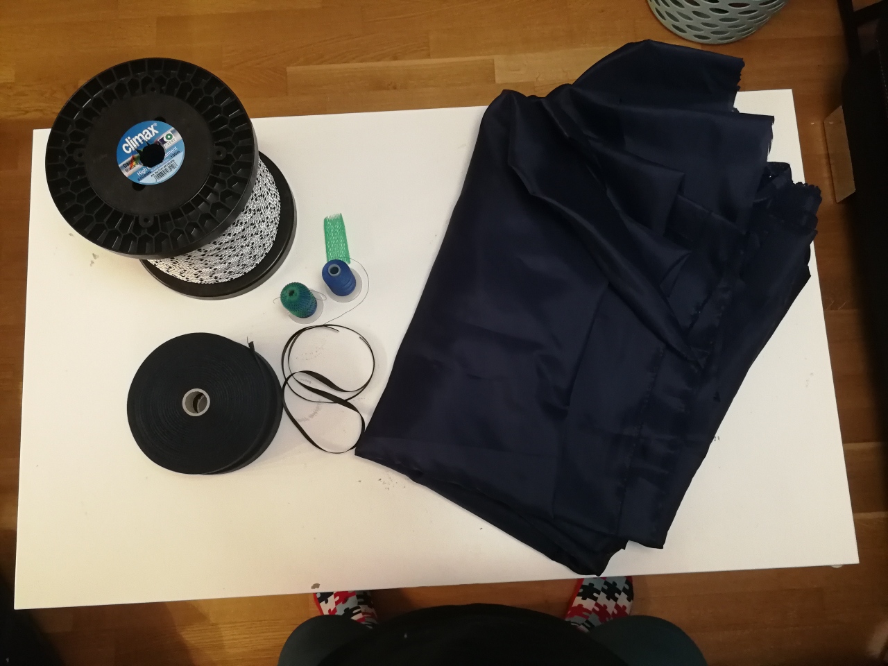... ich habe mir zwei blaue Fahnen je 20 m lang genäht. Vielleicht kommt noch eine dritte längere in weiß dazu.