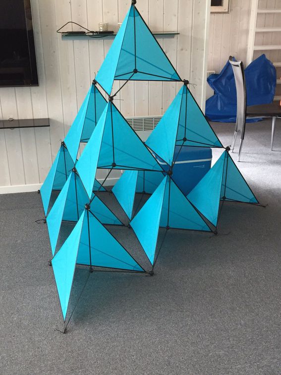 ja Wolfi, die Verbinder sind 3d gedruckt und kosten mich 30 Cent pro stück. Wenn sie kaputt gehen kann ich sie nachdrucken. (In der Pyramide sind sie steif...untereinander flexibel)