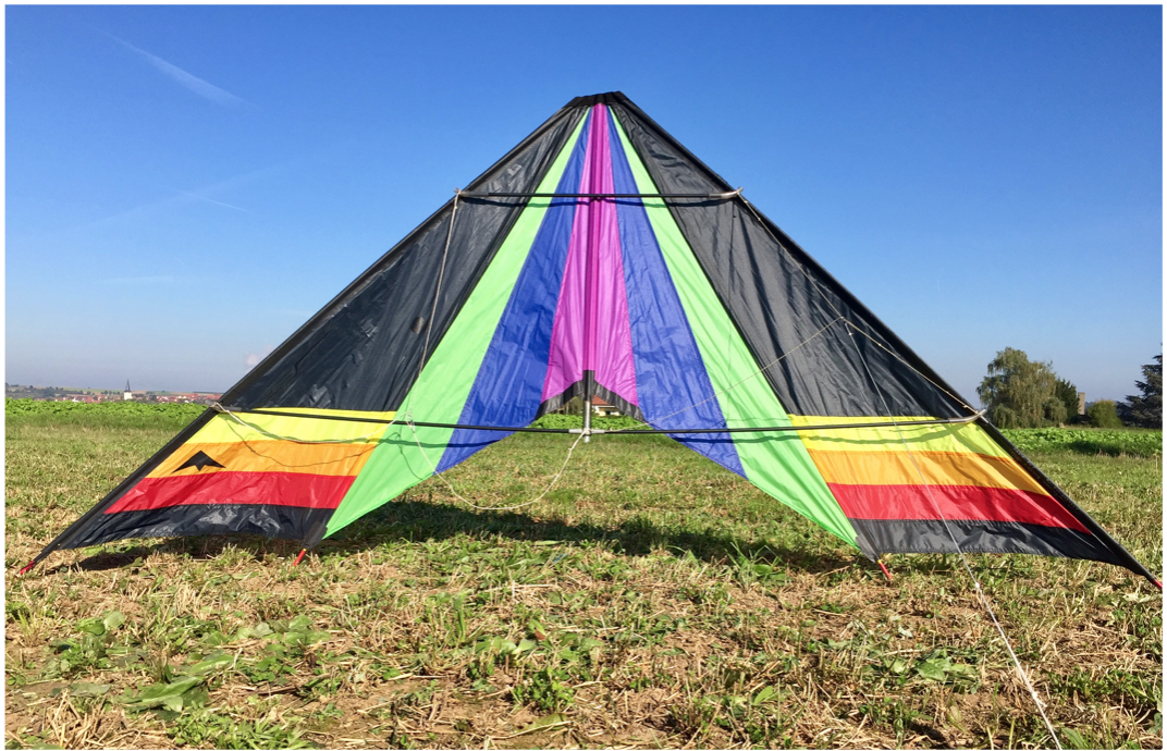 Das Gespann bestand im Wechsel aus einem Drachen in kompletten Flickwark und einem aus Flickwark mit einfarbigen Mittelteil. Thilos LD vario ist dann wieder ein Flickwark mit hellblauen Mittelteil.