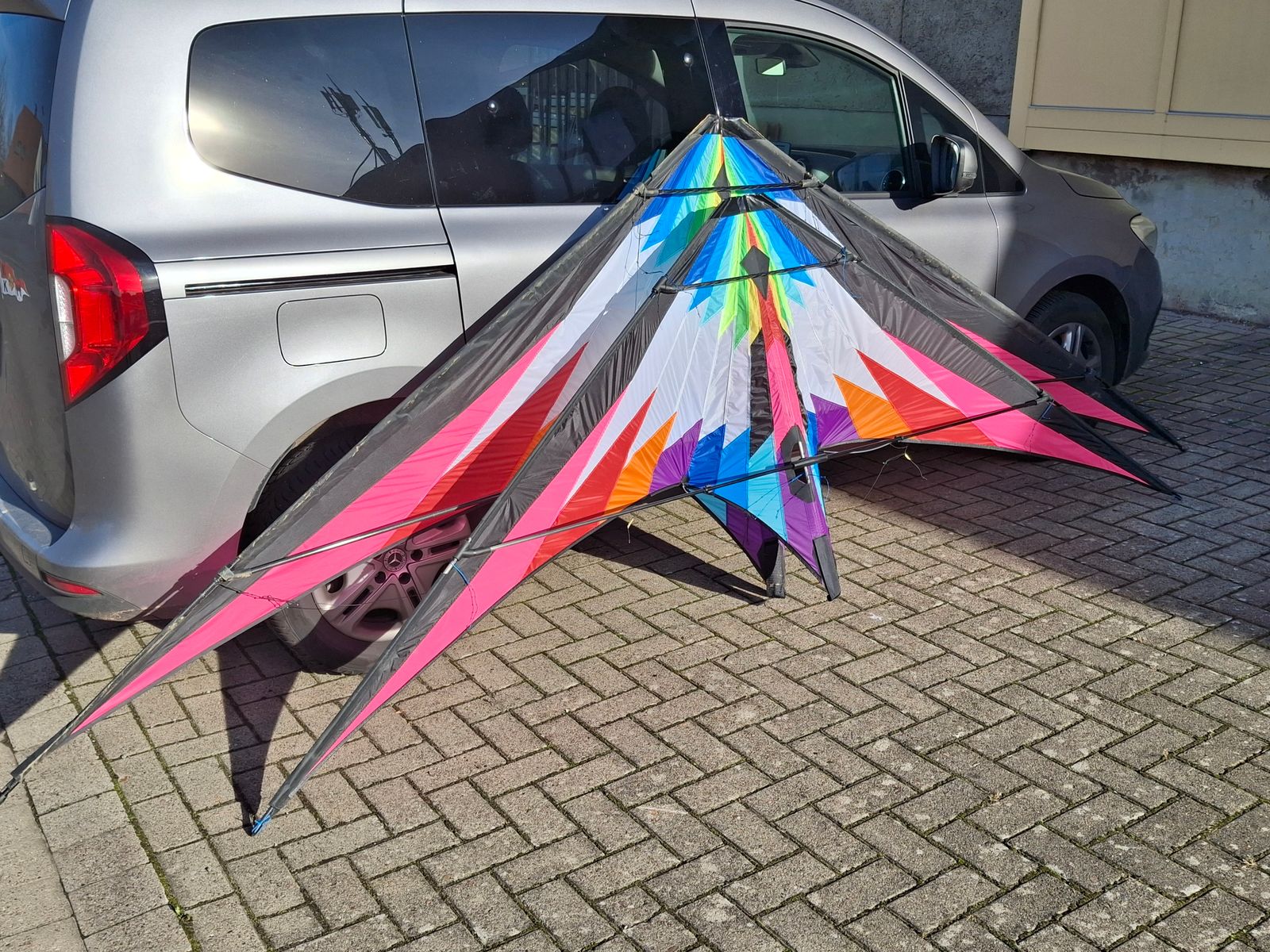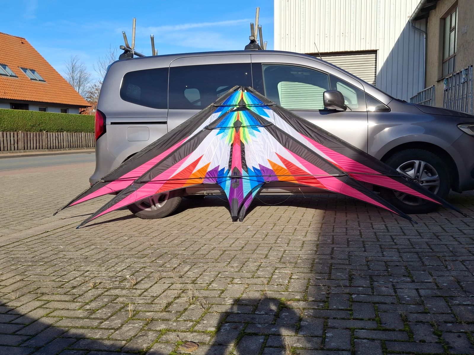Heute war Erstflug mit dem 2,5er Steiki, der aus dem Tuch von einem Big Lift von Elliot entstanden ist. Der Wind hat ja heute im laufe des Tages recht stark zugenommen und gegen Abend bin ich dann noch schnell auf die Wiese als es nicht mehr so stürmte. Kurz und gut, Leinen ausgelegt, Drachen in die Luft gehalten, sollte alles so passen und hoch damit. Verrückt, aber da passte wirklich mal alles. Da brummte und flatterte ausnahmsweise mal nichts, einfach nur ruhiger Flug im gefühlten dreier bis vierer Wind. Der Vogel, machte mir heute für die eine Stunde so richtig Laune. Ein paar Regentropfen haben wir dann doch noch abbekommen aber alles gut und ich bin jetzt Happy.