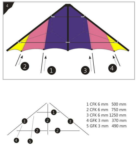Der oben abgebildete Kite hat die Maße 204cmx75cm.