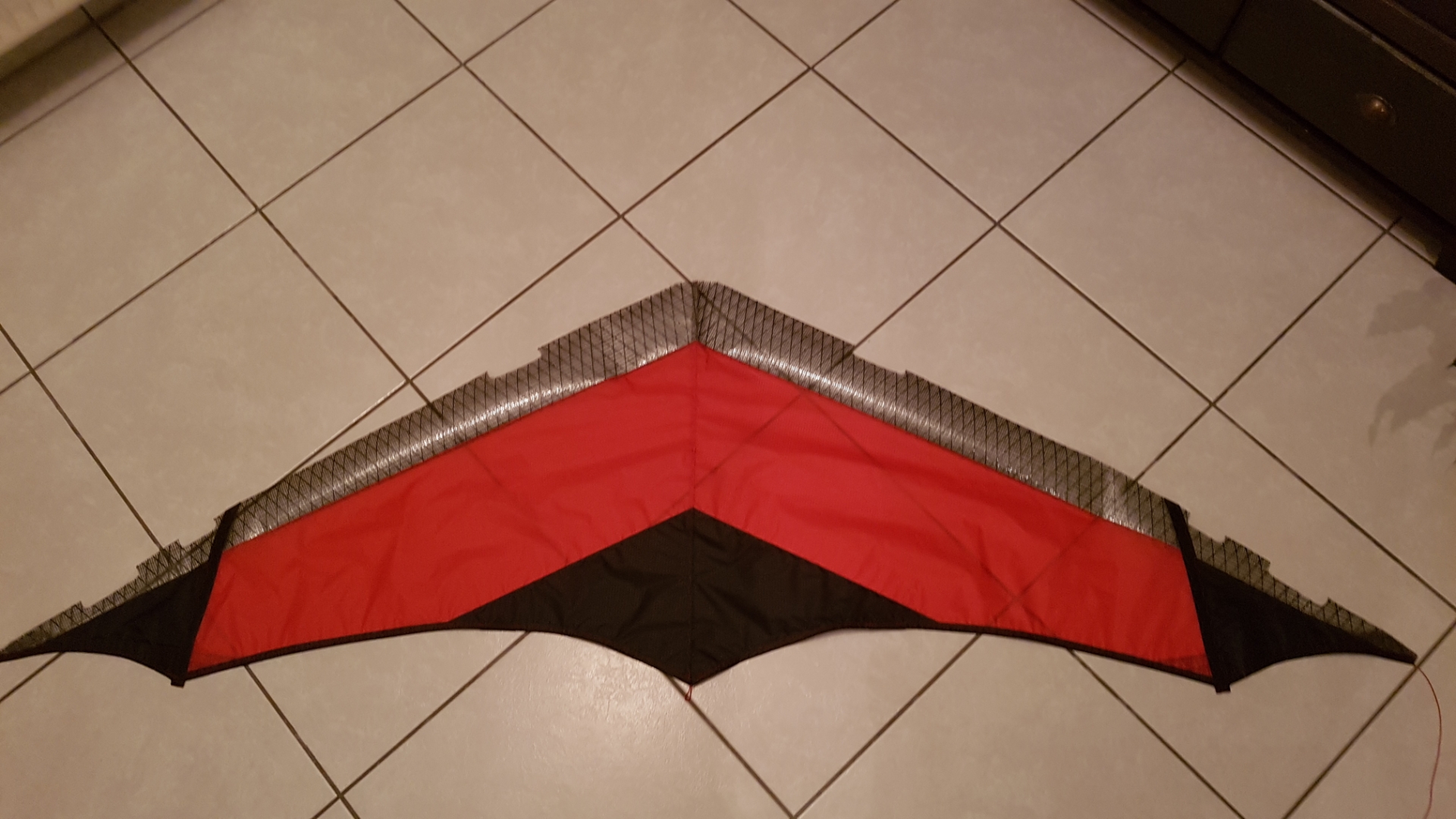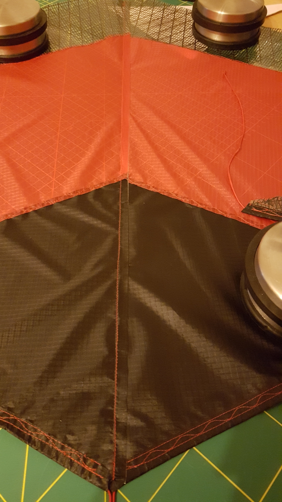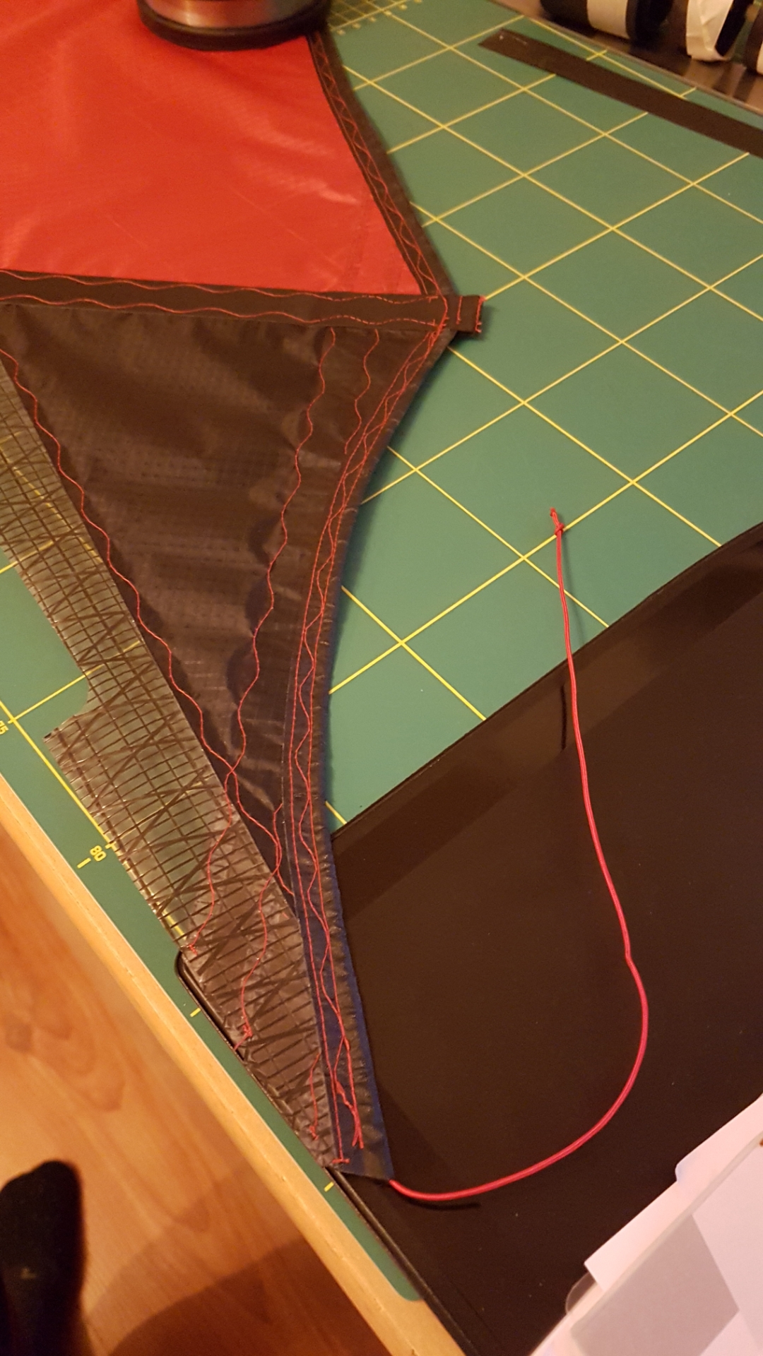 Ohne zu wissen, wie die Nähte so werden, habe ich mich für den roten Garn entschieden, obwohl die Empfehlung von Jörg hieß: Beim ersten Kite besser schwarz auf schwarz zu wählen.