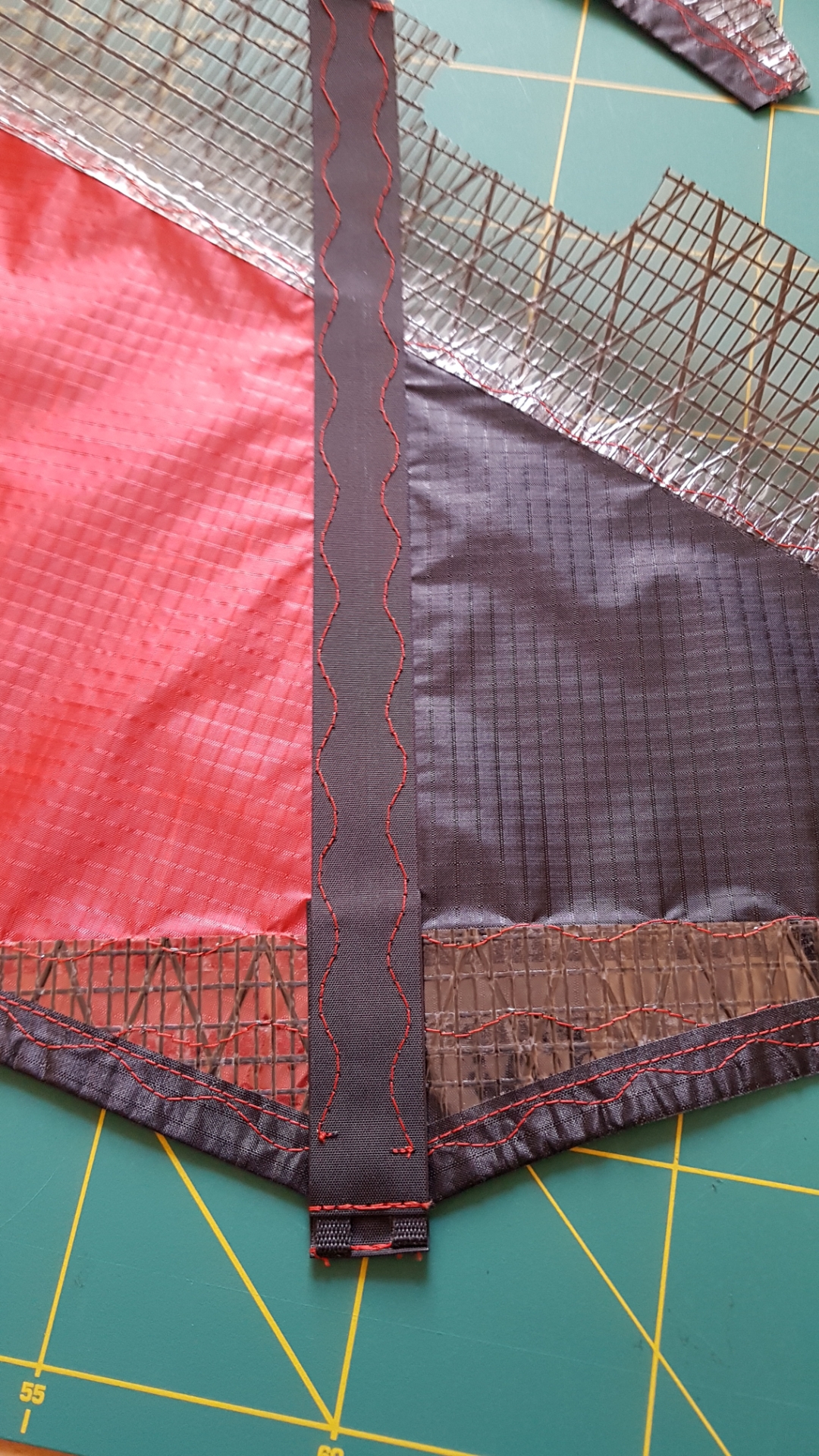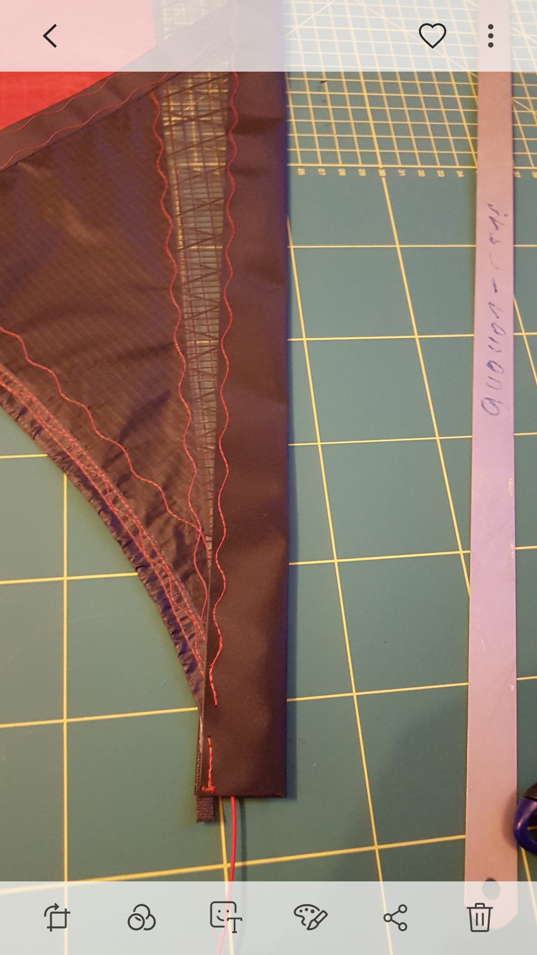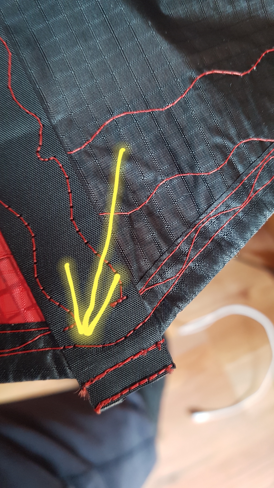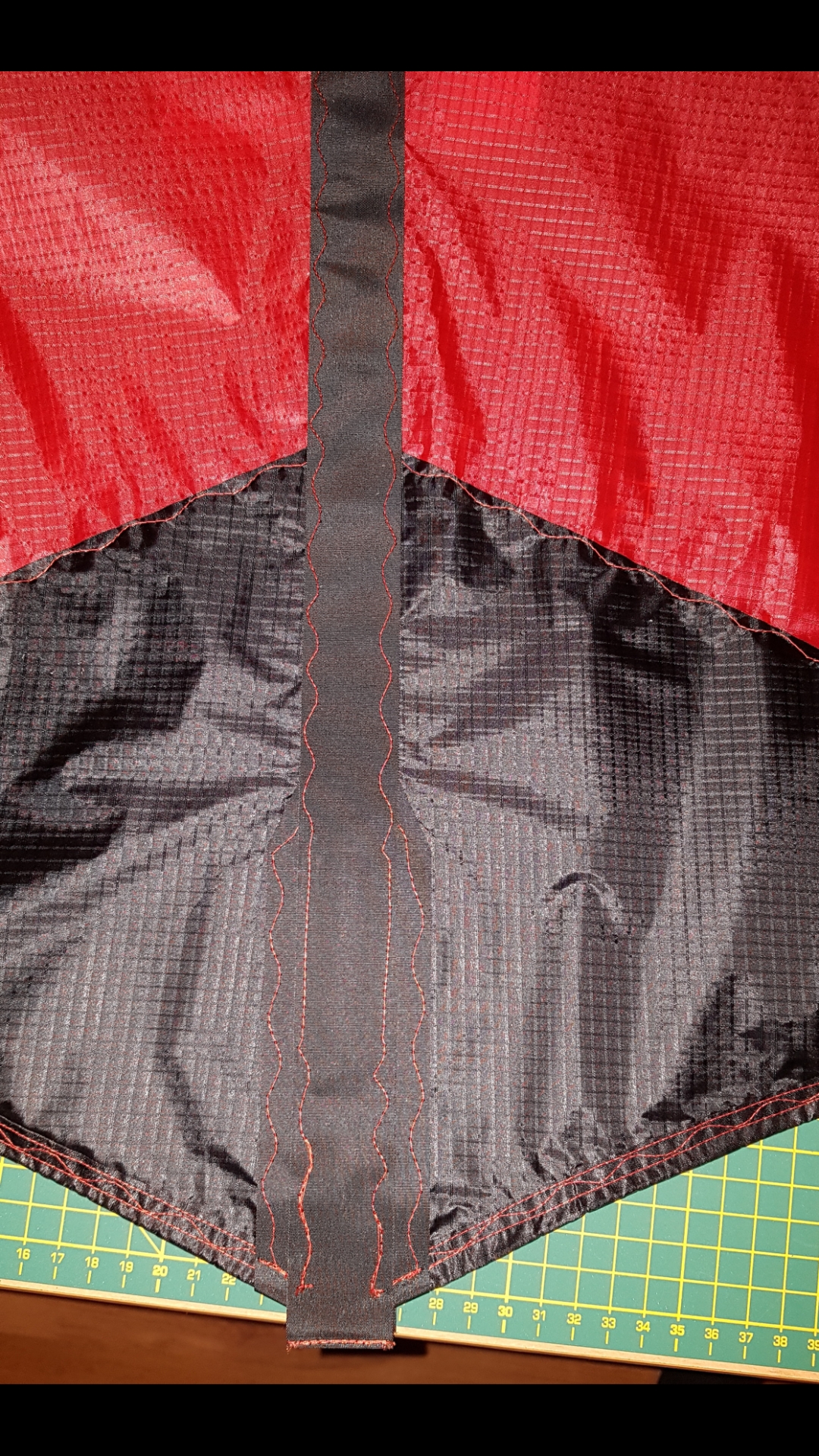 Ohne zu wissen, wie die Nähte so werden, habe ich mich für den roten Garn entschieden, obwohl die Empfehlung von Jörg hieß: Beim ersten Kite besser schwarz auf schwarz zu wählen.