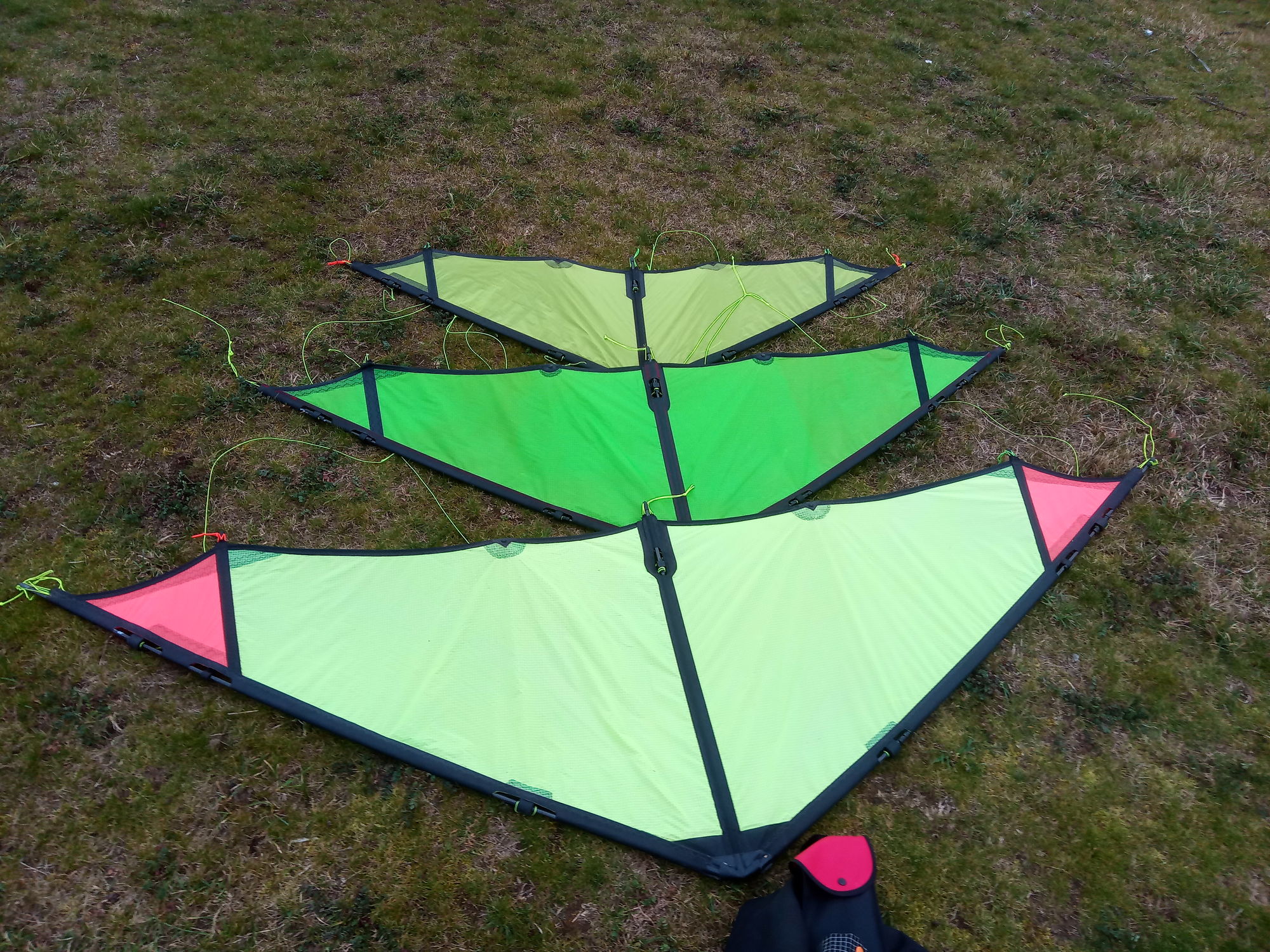 Whisker und Verstärkung liegen nicht auf einer Linie? Ja, korrekt, ist mit Absicht so ausgeführt, um die Segelecke sauber und mit etwas Druck auszustellen, hab da ja bei meinen Kites auch immer ordernlich Feuer drauf auf den Abspannungen.