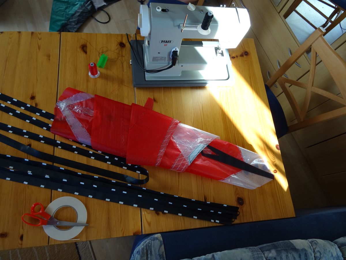 Die Nase ist 22mm für den Kiel abgenäht.