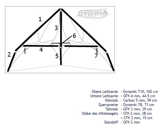 Und ich habe noch keinen Utopia mein eigen genannt bei dem der "Stab des Mittelsegel"(6) 2mm Durchmesser hatte, meine hatten immer 3 mm.