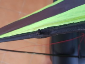 ) der Leitkantentasche, gemessen von der Flügelspitze. Damit kommt man z.B. bei 140 cm auf 84 cm. Danach wird das durch Testflüge fein justiert. So hat der Return dann seine 86 cm erhalten. Werden 6mm Leitkanten verwendet, dann bieten sich zum Einfliegen die HQ Jojo-Stopper an, die kann man gut temporär auf die Leitkante klemmen ohne diese zu löchern. -