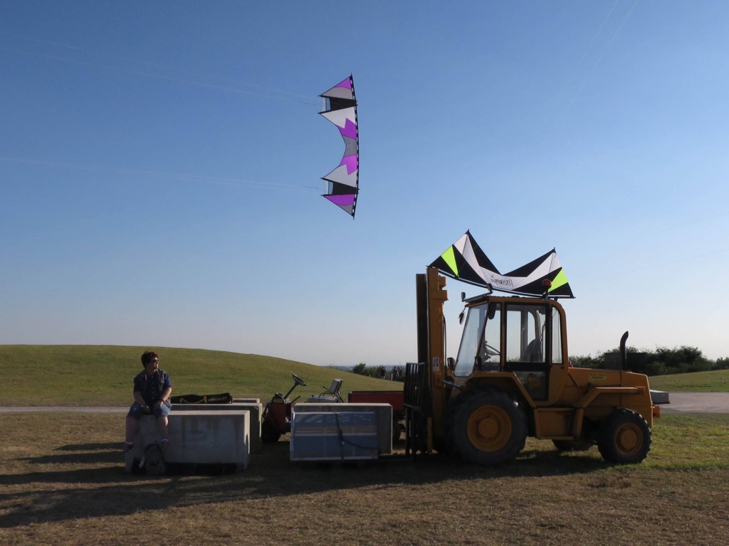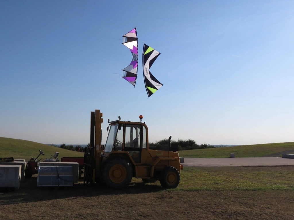 7 Koppelleinen? Wow - ich fliege mein großes Skyknifegespann nur an 4 Koppelleinen - ich nutzte die Waage. Das funktioniert beim Skyknife sehr gut, die fliegen sehr gleichmäßig und ruhig.Hier mal ein Bild, dass @Ledros in SPO gemacht hat. Gut streng genommen keine Revs - aber passt hier trotzdem ganz gut rein, denn es ist ja ein Kunstfoto.