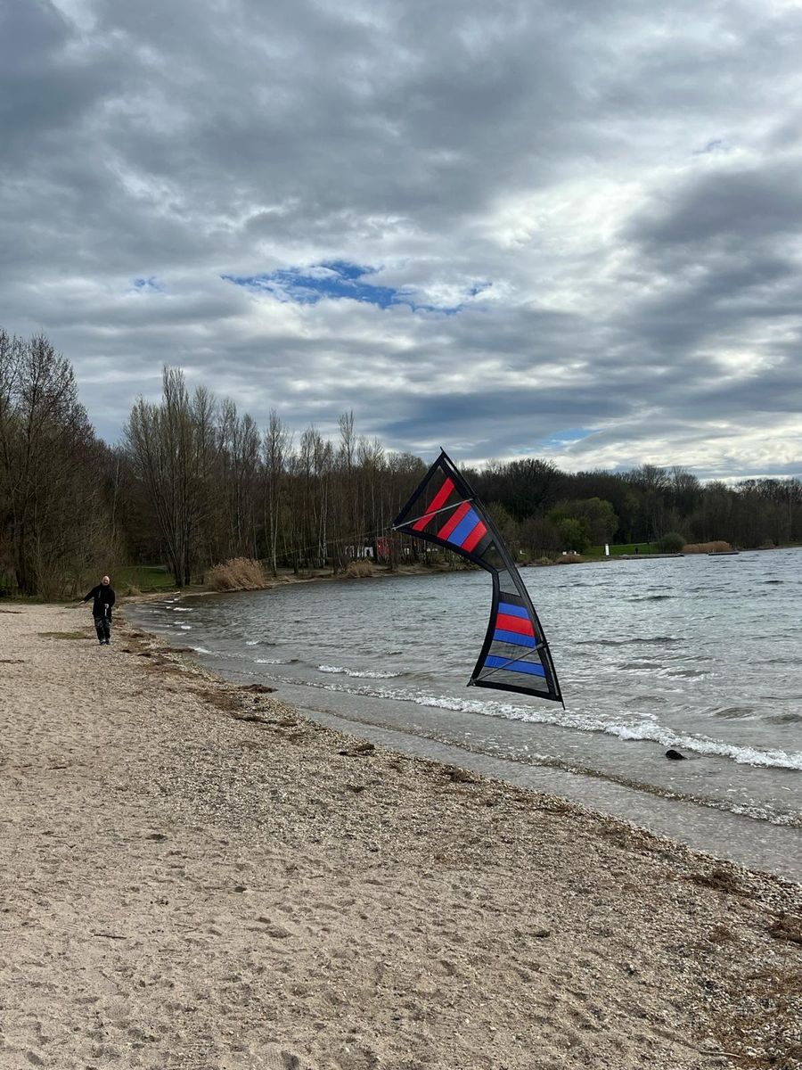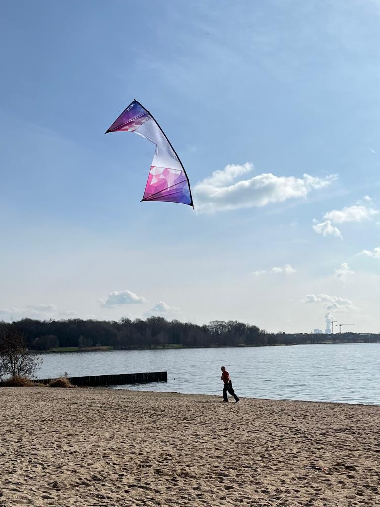Heute am Strand von Katwijk mit 19kn (und Böen bis zu 23kn) hat dann alles gepasst. Ein toller Kite von Korvo der richtig Spaß macht